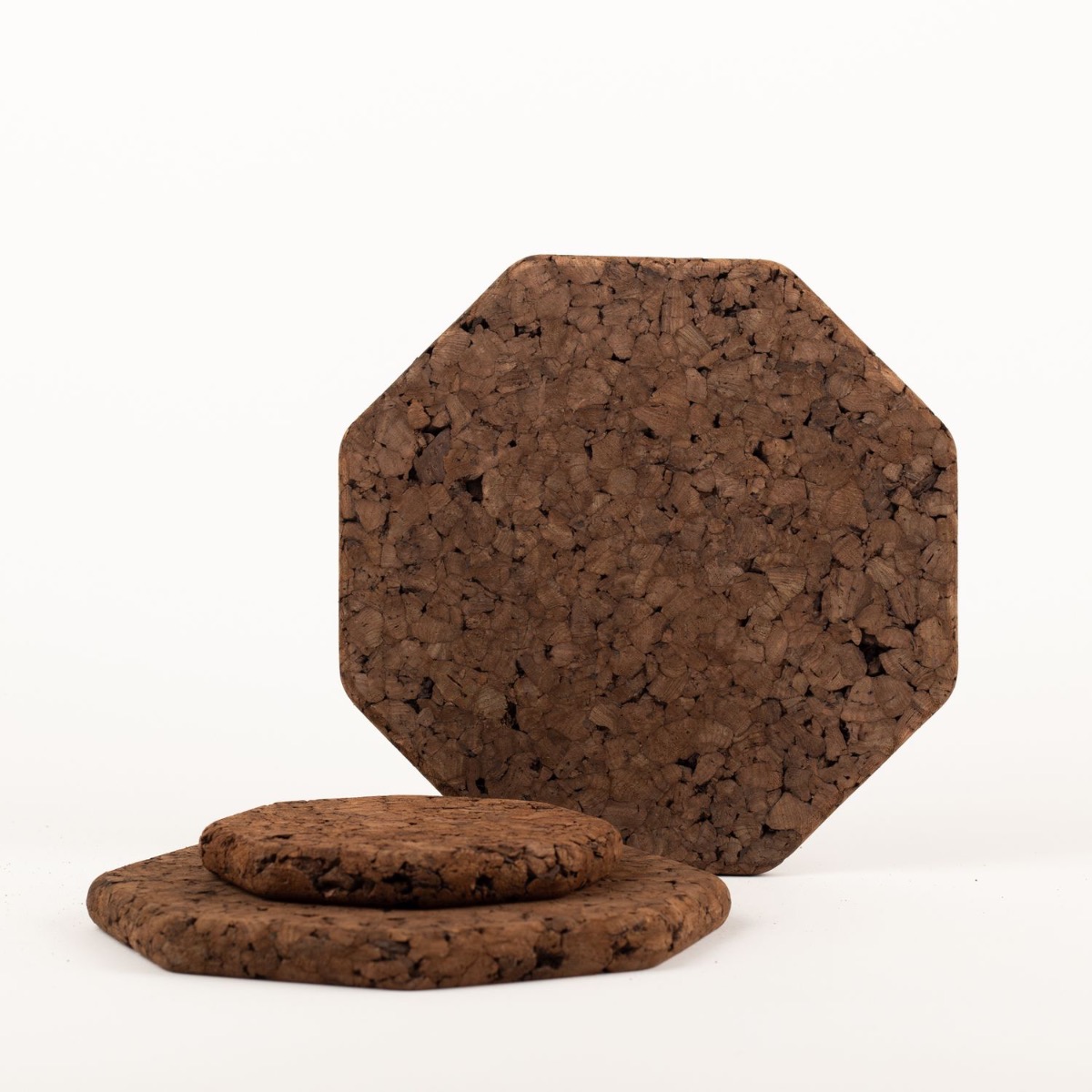 Posavasos de corcho octogonal MANARA, oscuro, 1,8cm, Ø25cm