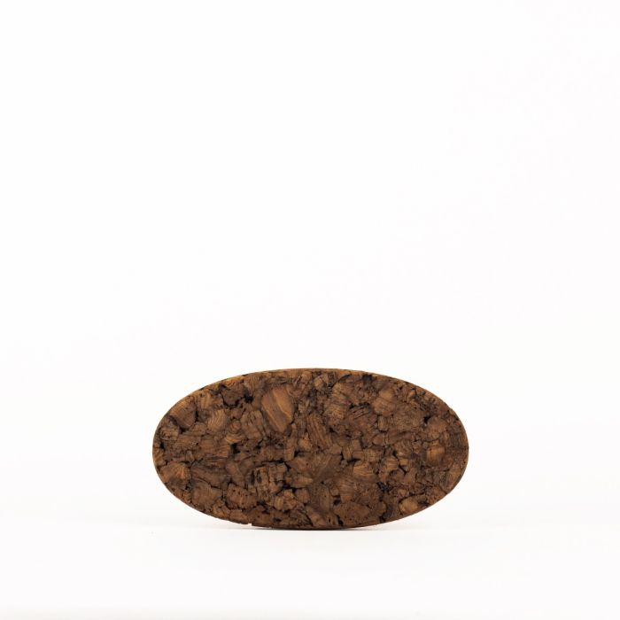 - De color oscuro elaborado a partir de corcho prensado. Para formar el corcho prensado se añade un aglutinante a los gránulos de corcho clasificados. El aglutinante, un adhesivo de calidad alimentaria, actúa como un agente natural, asegurando que las partículas de corcho se adhieran entre sí manteniendo sus propiedades únicas.