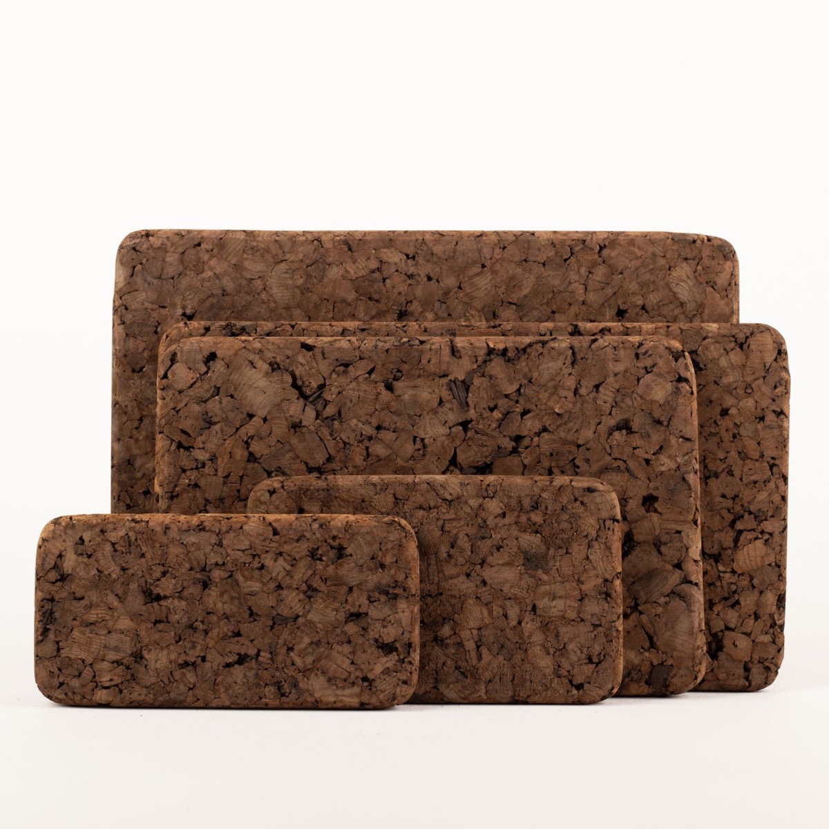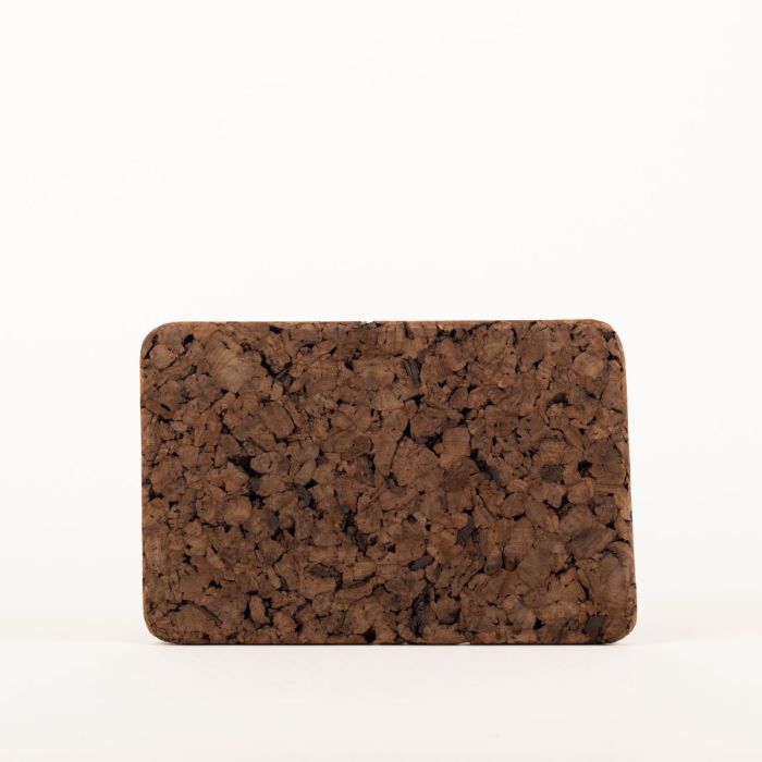 - De color oscuro elaborado a partir de corcho prensado. Para formar el corcho prensado se añade un aglutinante a los gránulos de corcho clasificados. El aglutinante, un adhesivo de calidad alimentaria, actúa como un agente natural, asegurando que las partículas de corcho se adhieran entre sí manteniendo sus propiedades únicas.