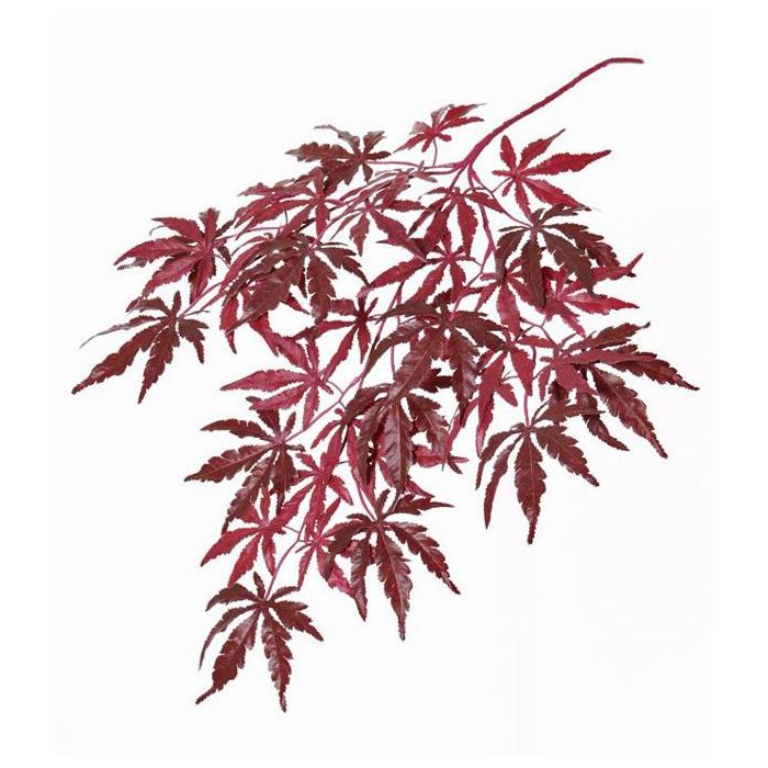 La rama artificial de arce DIRK mide aprox. 70 cm de largo y posee aprox. 35 hojas dentadas, dispuestas en forma de estrella en color burdeos.