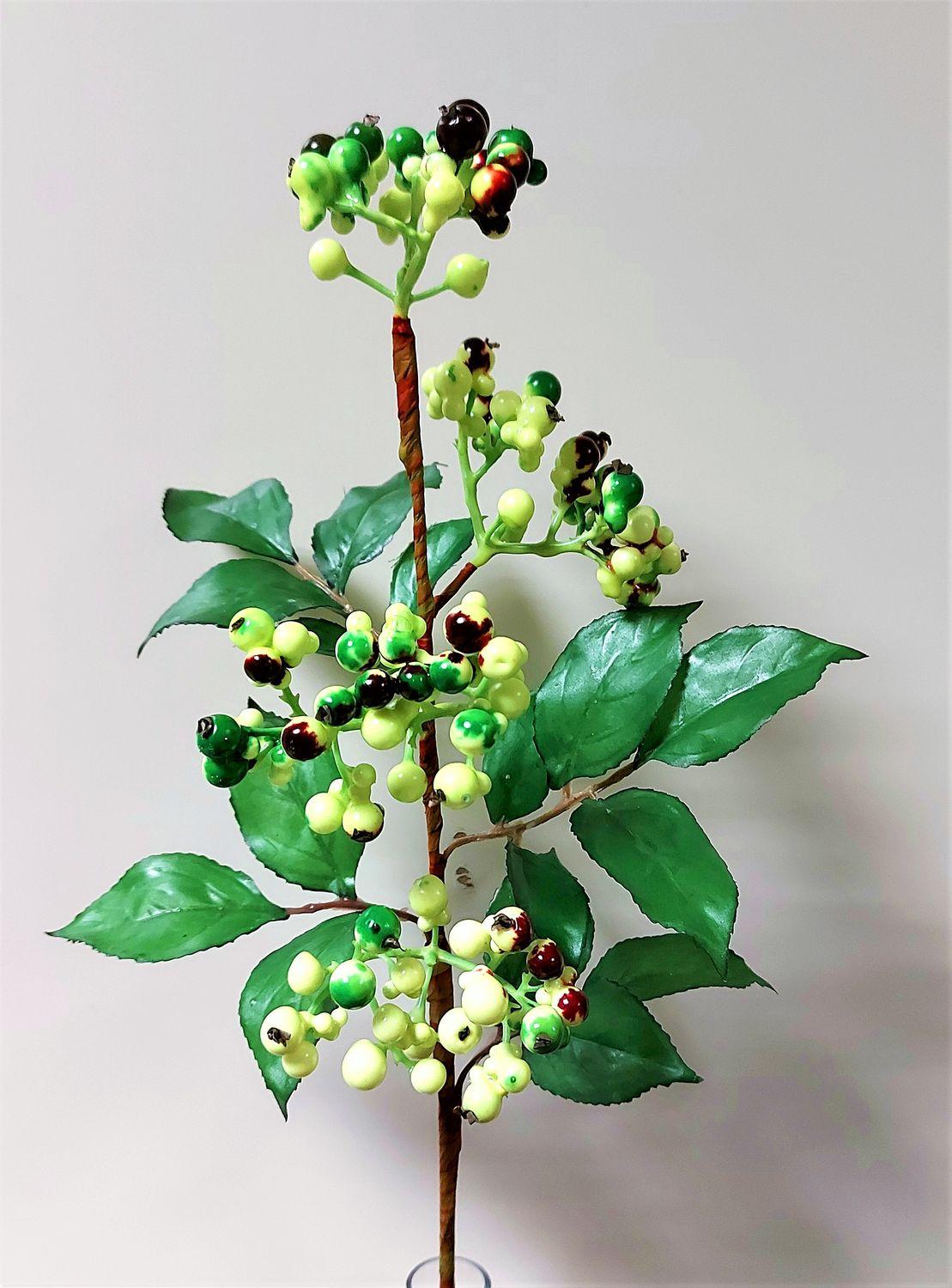 Rama artificial de bayas de saúco CHATANGA con frutos, verde-rojo, 60 cm
