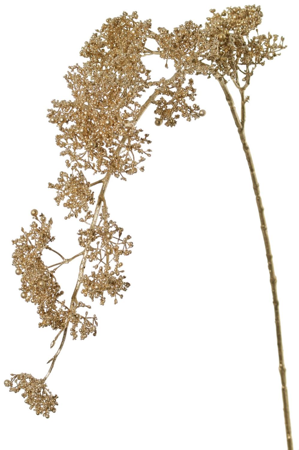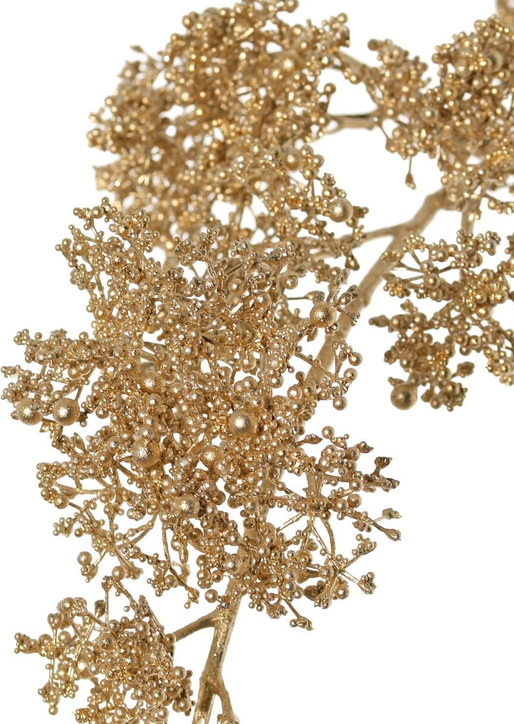 Rama artificial de bola de nieve SALFHY con brotes, metalizado plateado y dorado, 90 cm