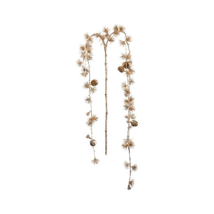 Rama artificial de cedro KROMEL con piñas, colgante, dorado metalizado, 125 cm