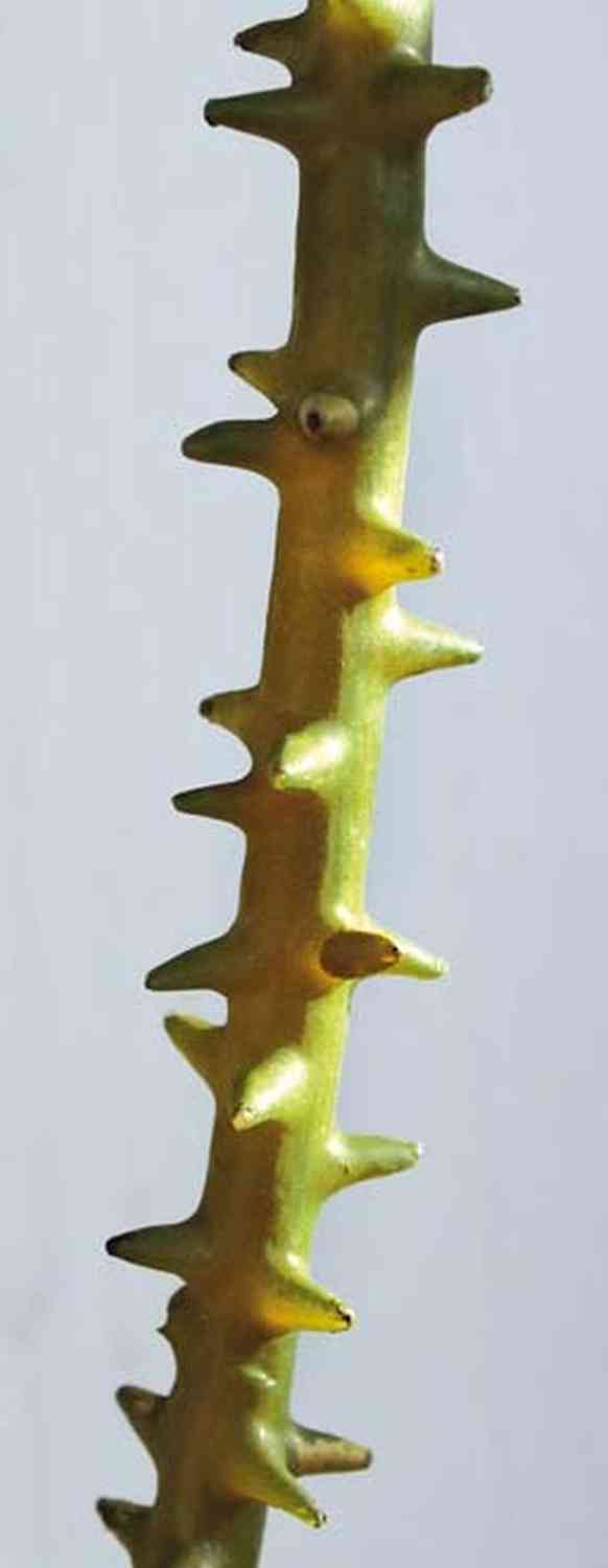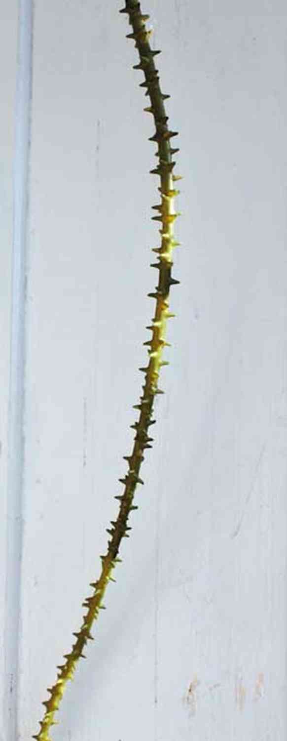 - De color verde-marrón con numerosas espinas