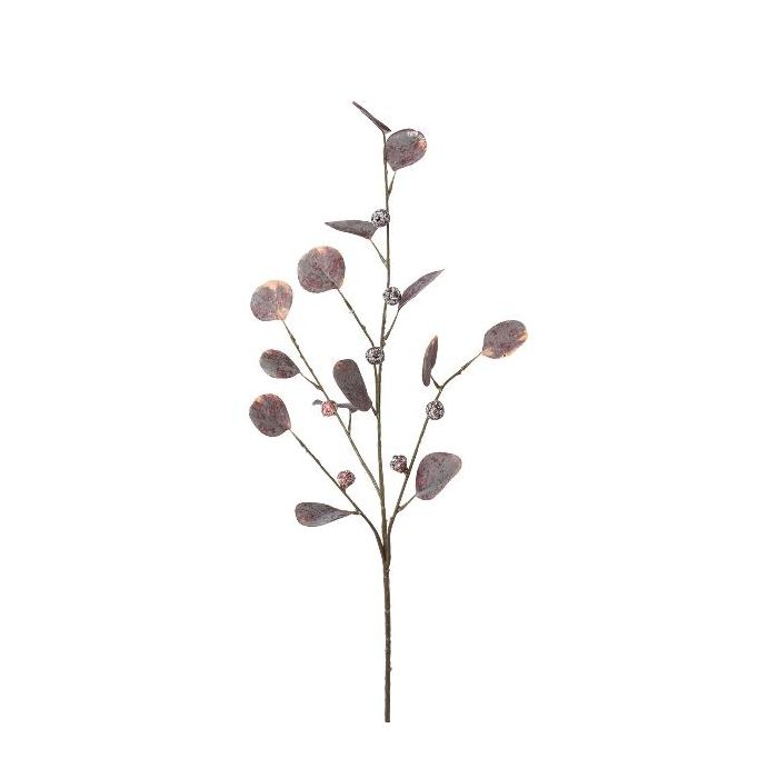 Rama artificial de eucalipto TRAVON con frutos, berenjena, 75 cm
