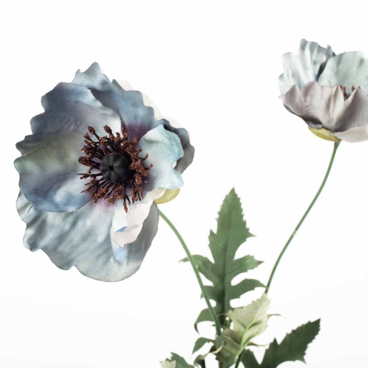 Rama artificial de flores amapola GUNDULA, Eco Collection, gris azulado, 70 cm, Ø 7-8 cm