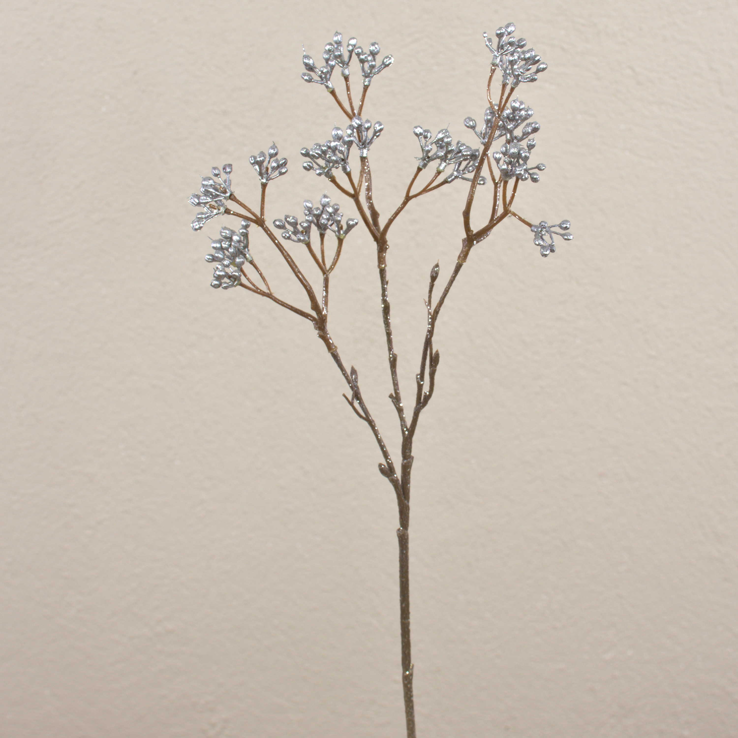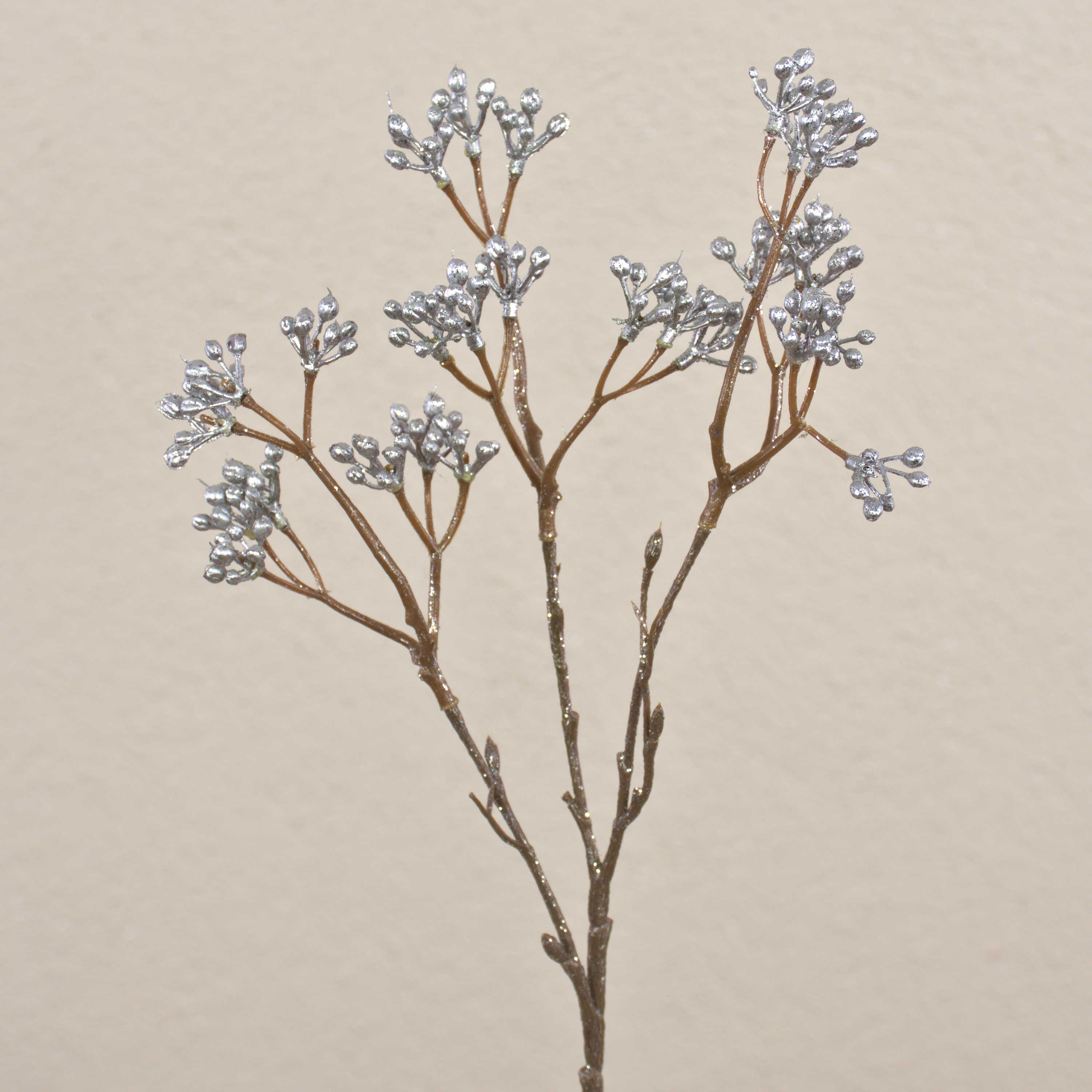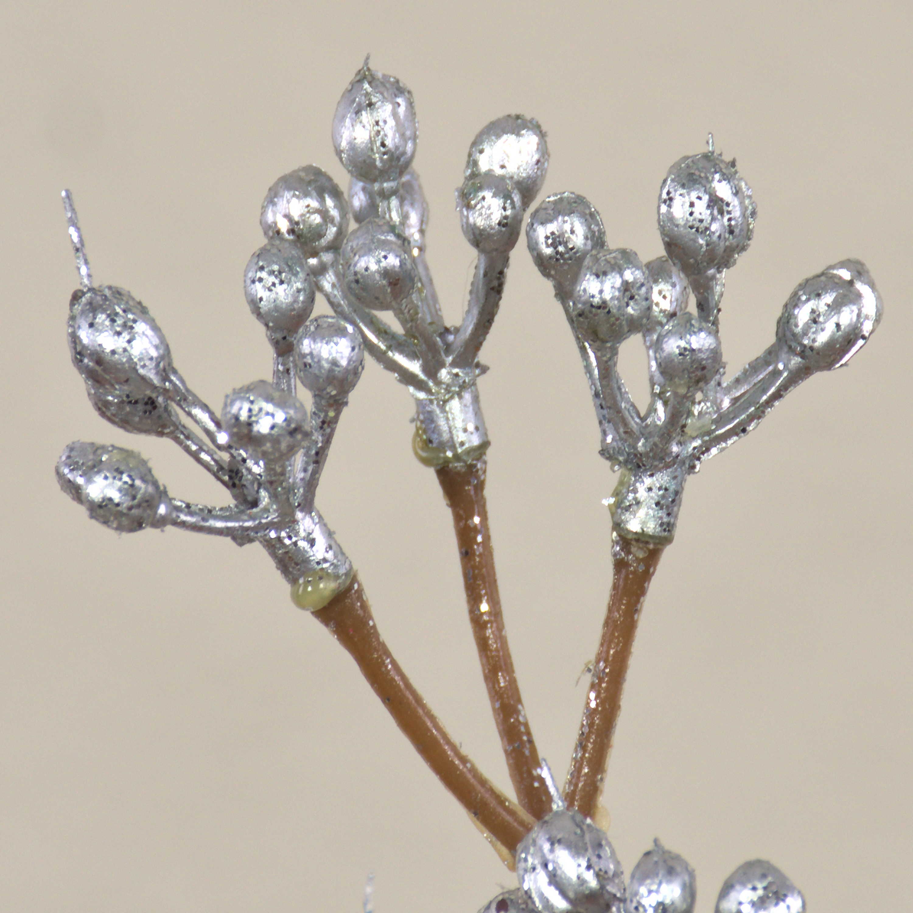 Rama artificial de gaultheria BENZO con bayas, brillo, plata, 40cm