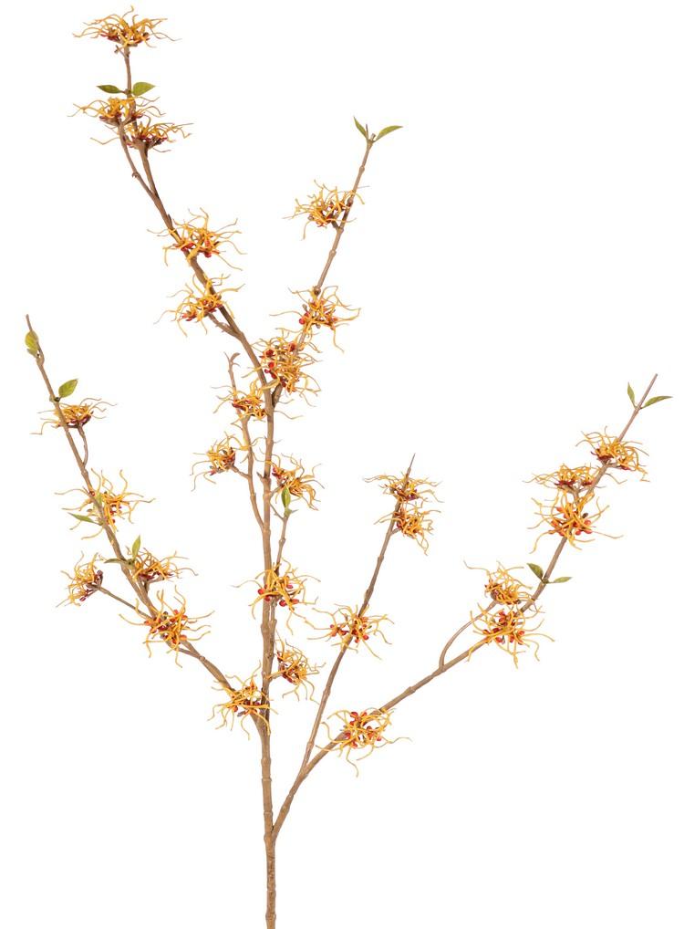 Rama artificial de hamamelis XYLA, flores, naranja-amarillo, 120 cm, Ø 5 cm