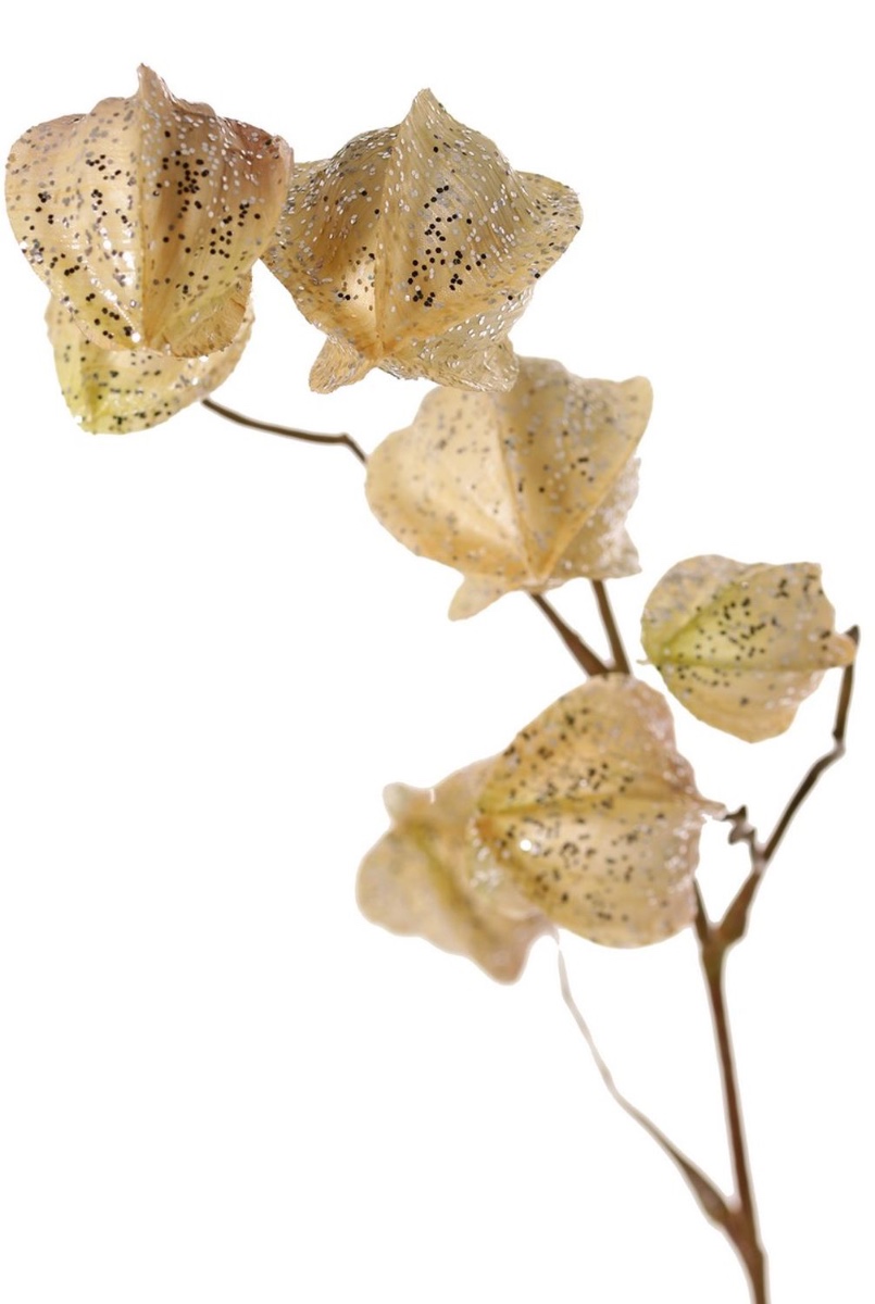 Rama artificial de physalis AINOS, frutos, purpurina, crema, 80 cm