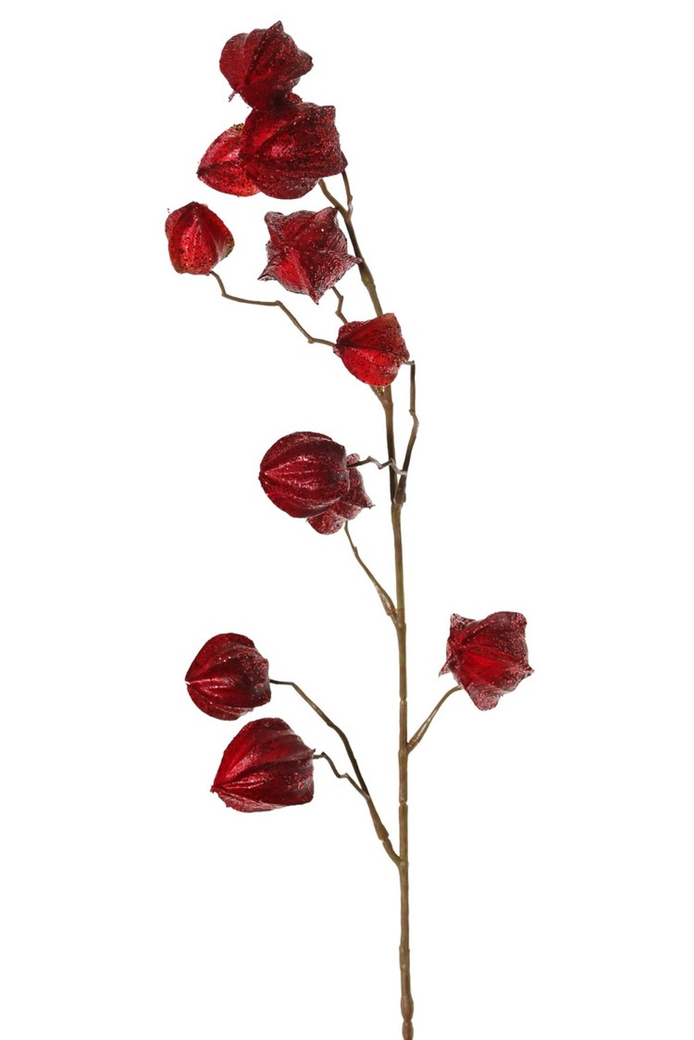 Rama artificial de physalis AINOS, frutos, purpurina, rojo burdeos, 80 cm