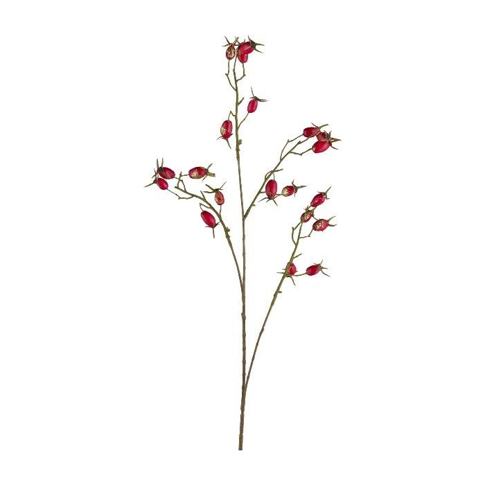 Rama artificial de rosa silvestre GLUHEN con escaramujos, purpurina, roja, 75 cm
