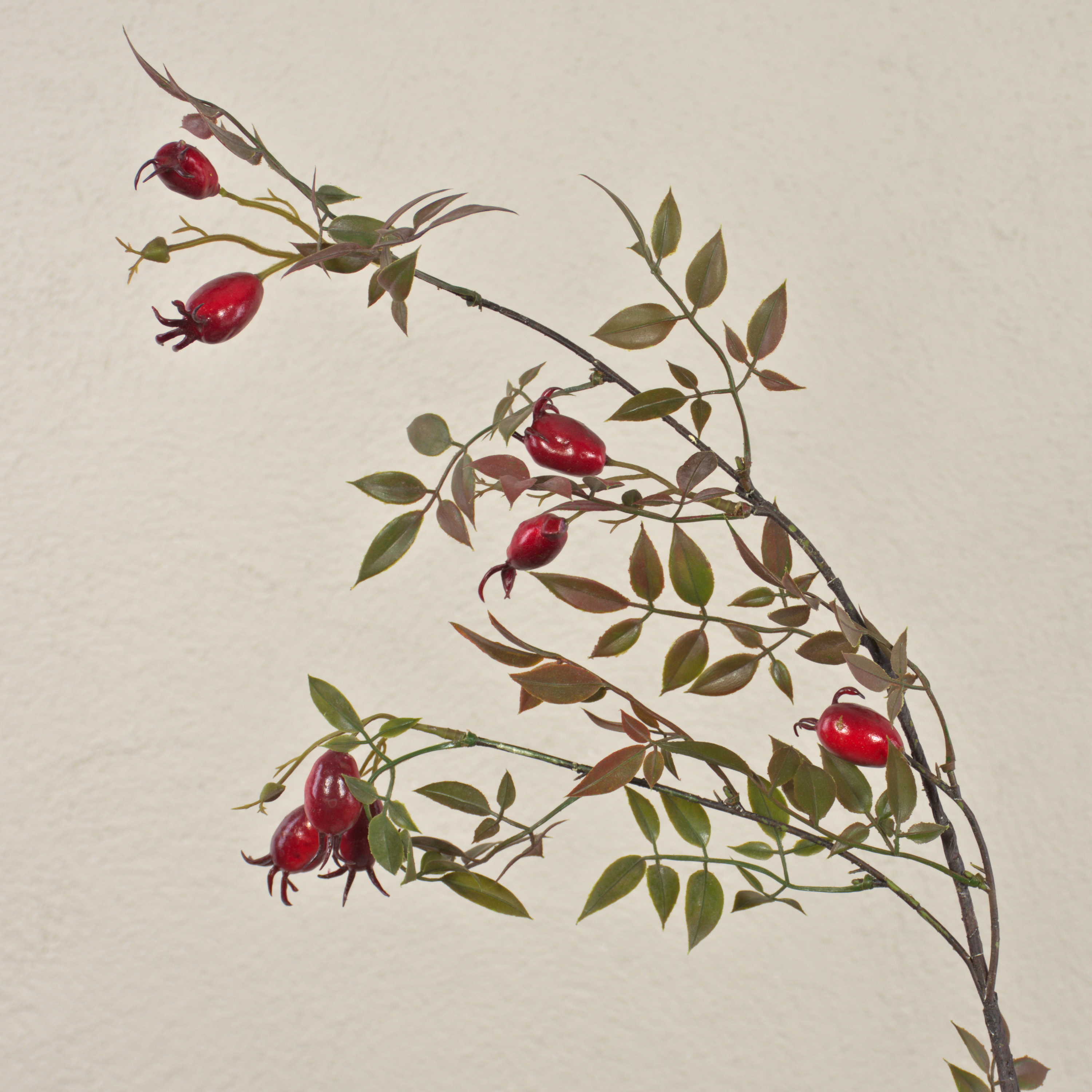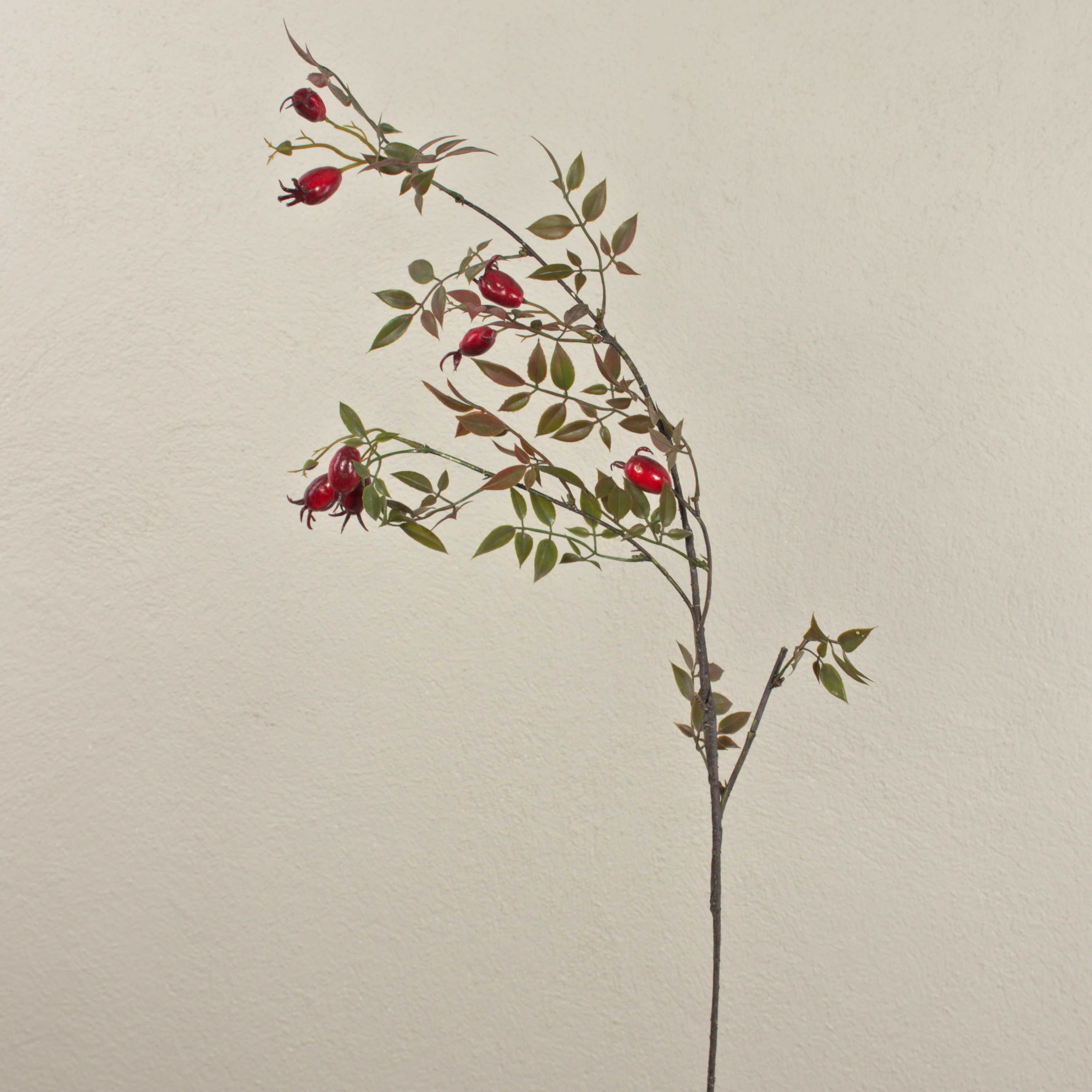Rama artificial de rosas silvestres VARDALIA con escaramujos, roja, 95 cm