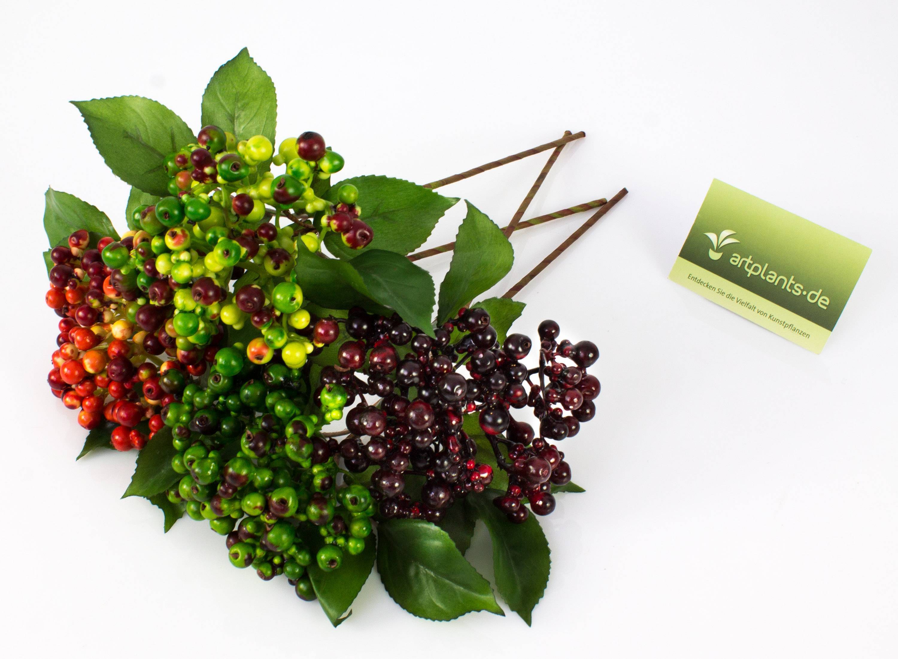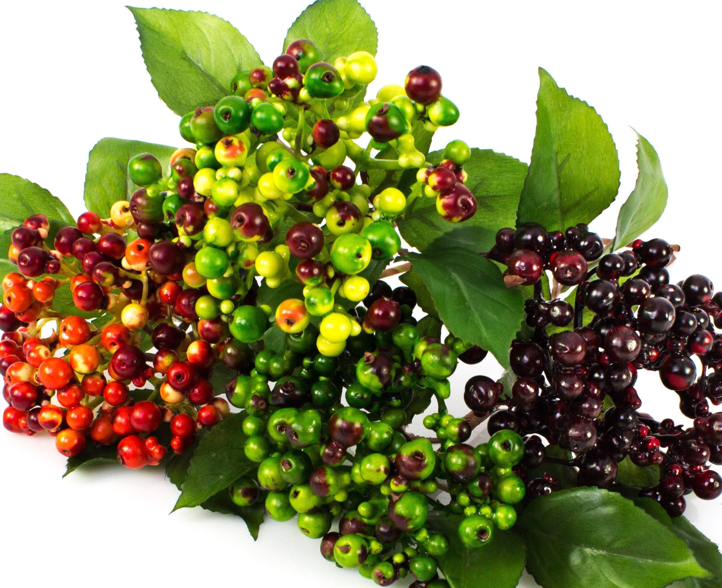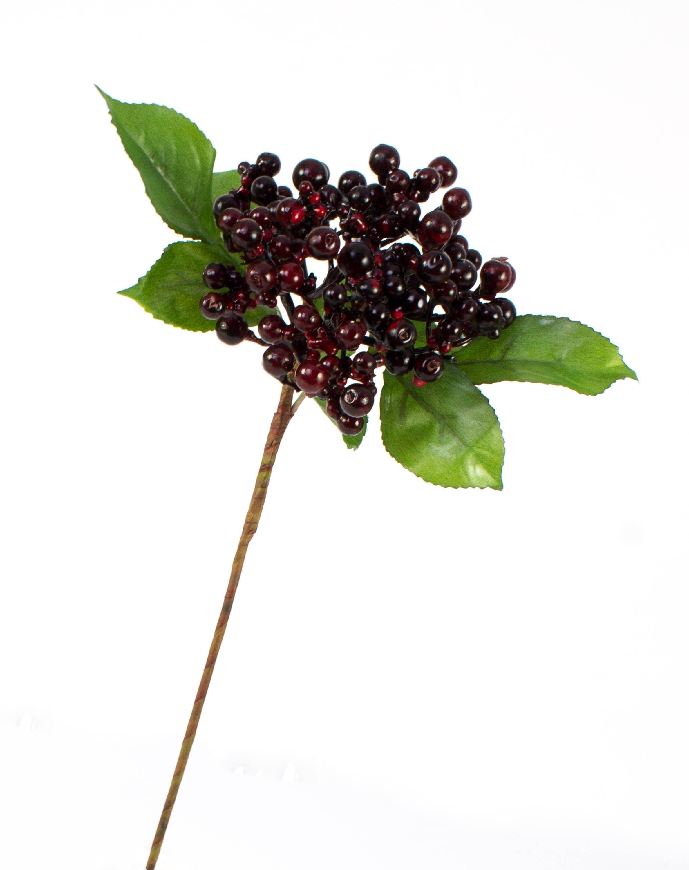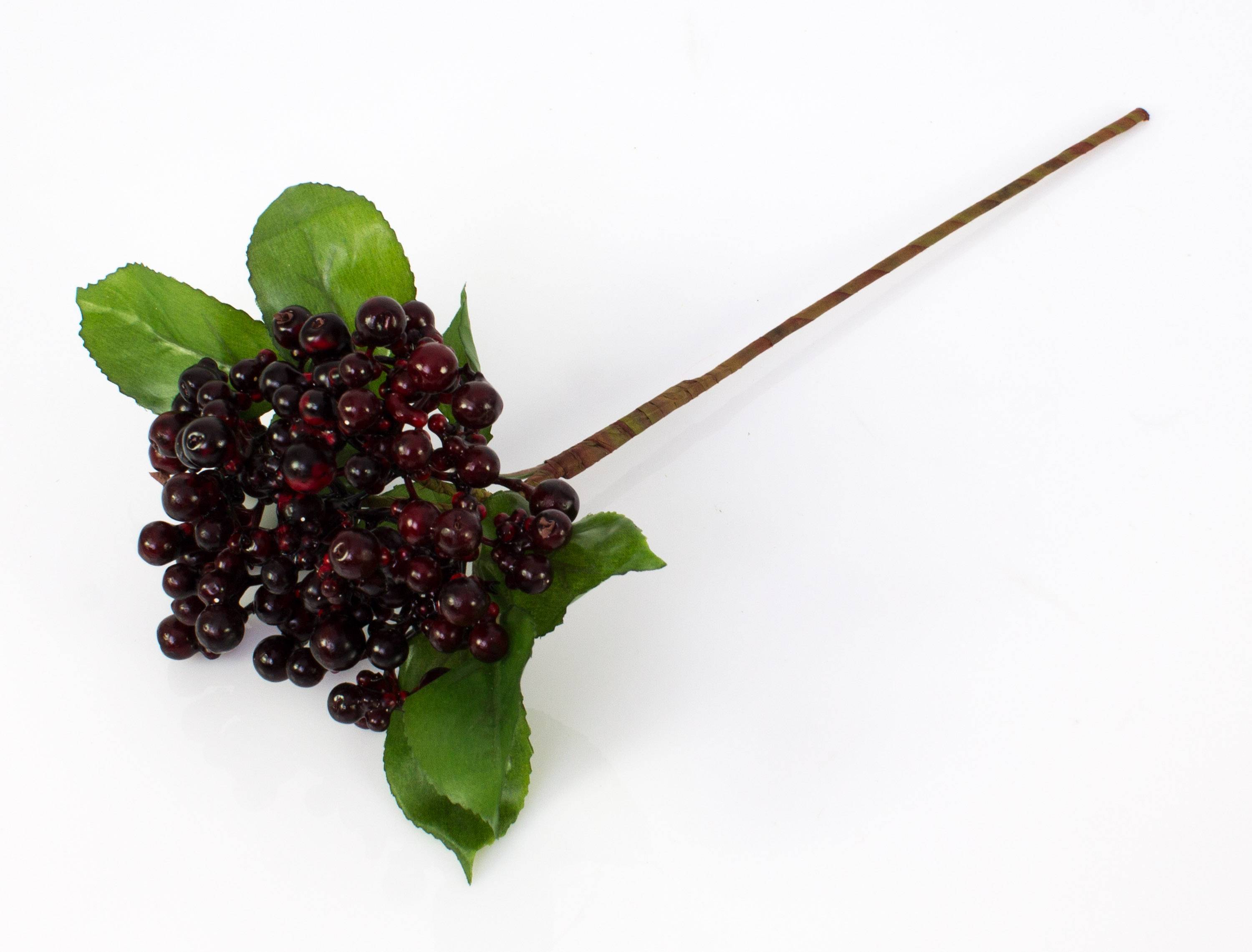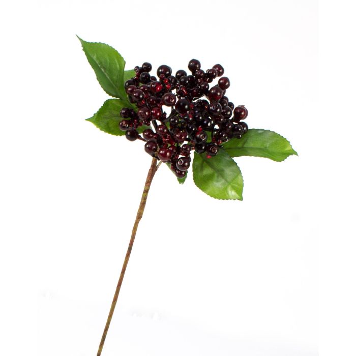 - Con bayas de color burdeos y 2 ramas de hojas hechas de material de alta calidad