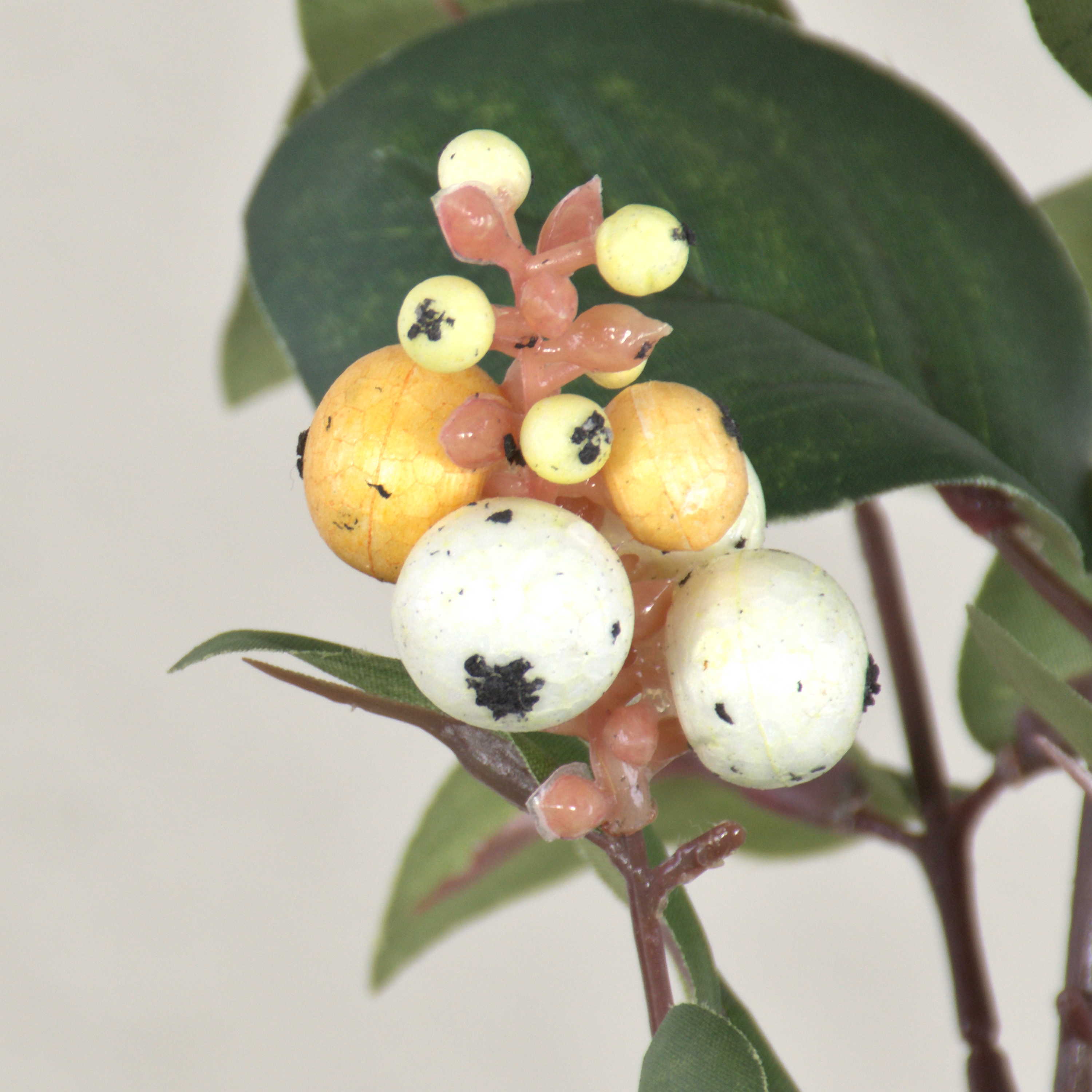 - Con bayas de color crema y blanco (Ø 0,5 - 1,5 cm) elaboradas con espuma de poliestireno