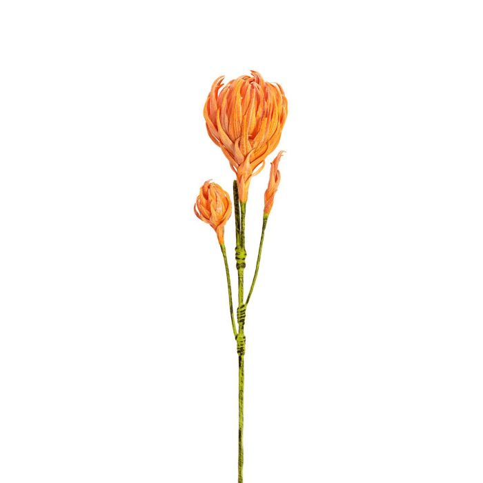 La rama artificial de dahlia DENISE posee tres flores de diferentes tamaños en color naranja. La flor artificial es la decoración ideal para su entrada en combinación con otras ramas reales o artificiales.
