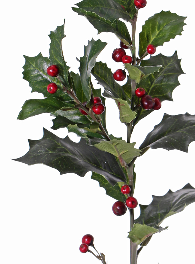 Rama de acebo artificial TIBAR con bayas, verde, 75cm