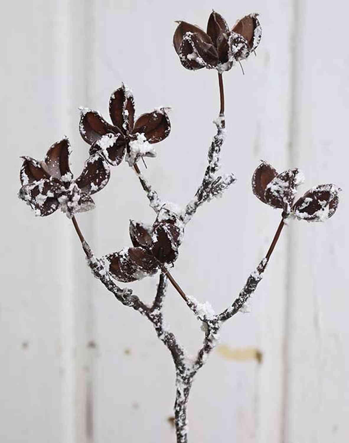 Rama de algodón de plástico NIRO, frutas, nevado, marrón-blanco, 30cm