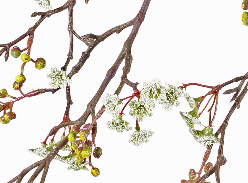 Rama de arce de imitación TABIO, con flores, blanco-verde, 95cm