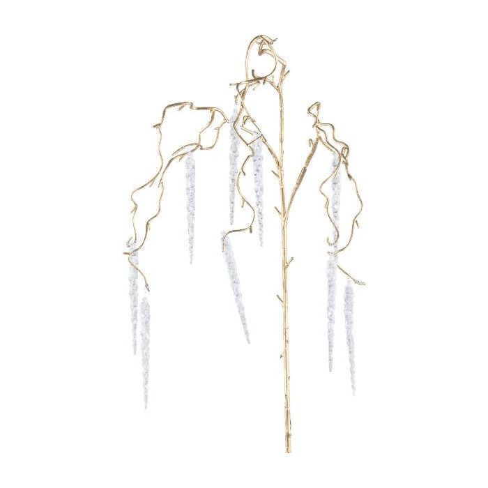 Rama de avellano artificial MONDEL con carámbanos, colgante, dorada, 115 cm