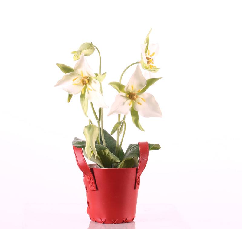 Lirio artificial triple MADIE con una longitud total de unos 40 cm en color blanco-verde.