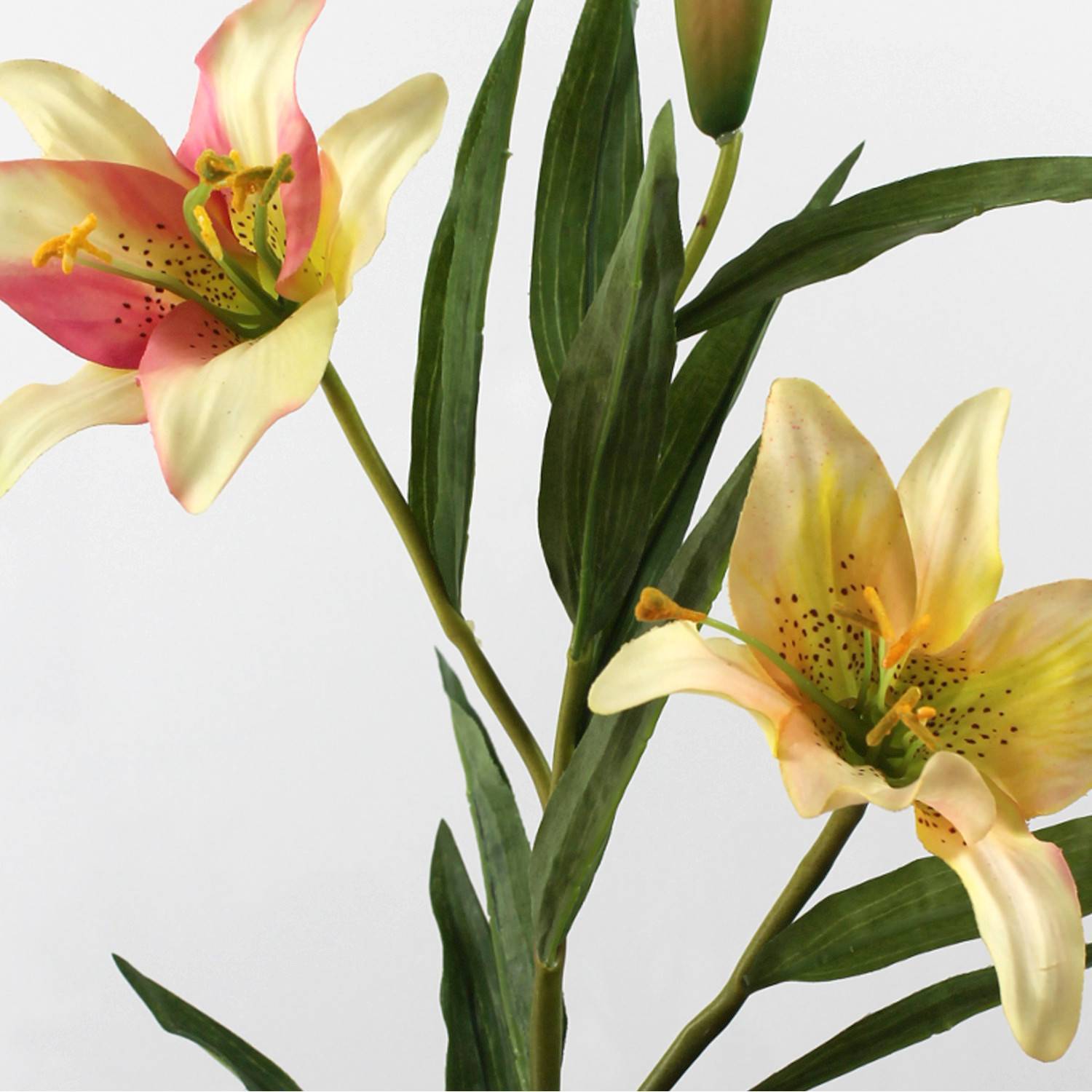 Lirio oriental con 2 flores y un brote. La azucena artificial mide un total de aprox. 88 cm de largo.