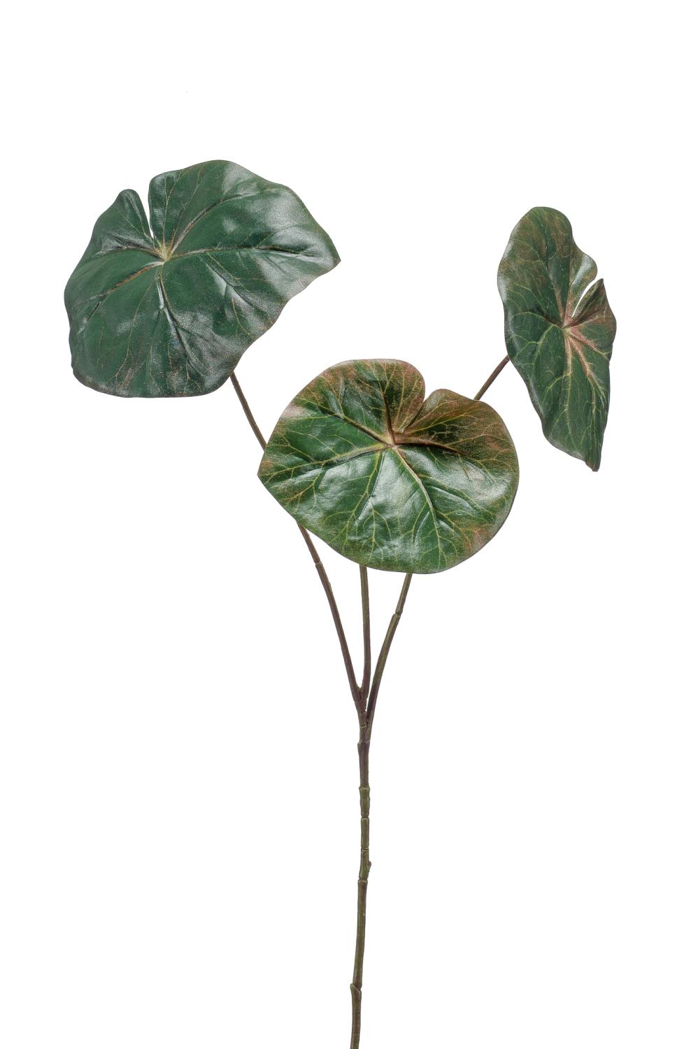 La hoja artificial de begonia ANTALINA en color verde está unida a un tallo y tiene una longitud de aproximadamente 65 cm.