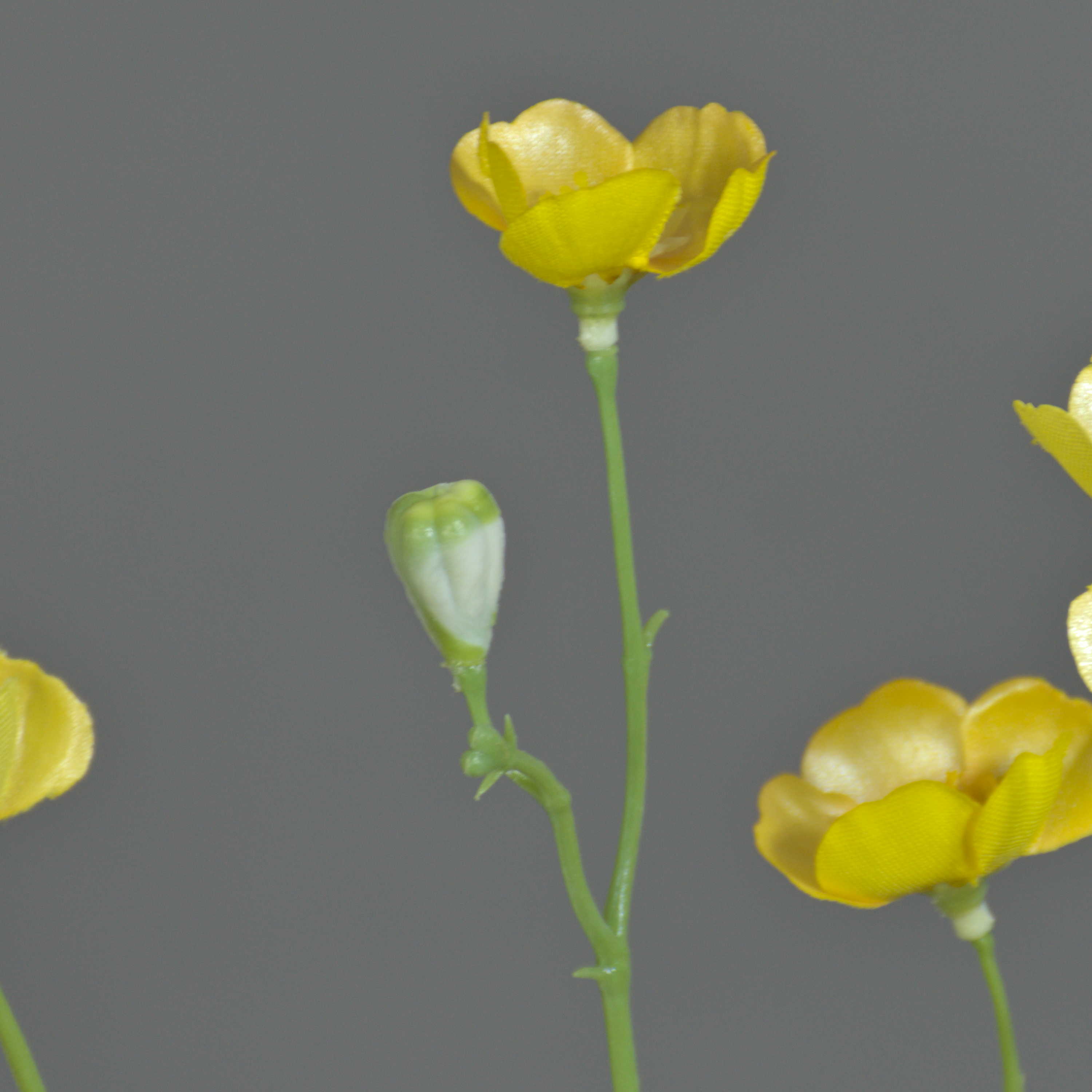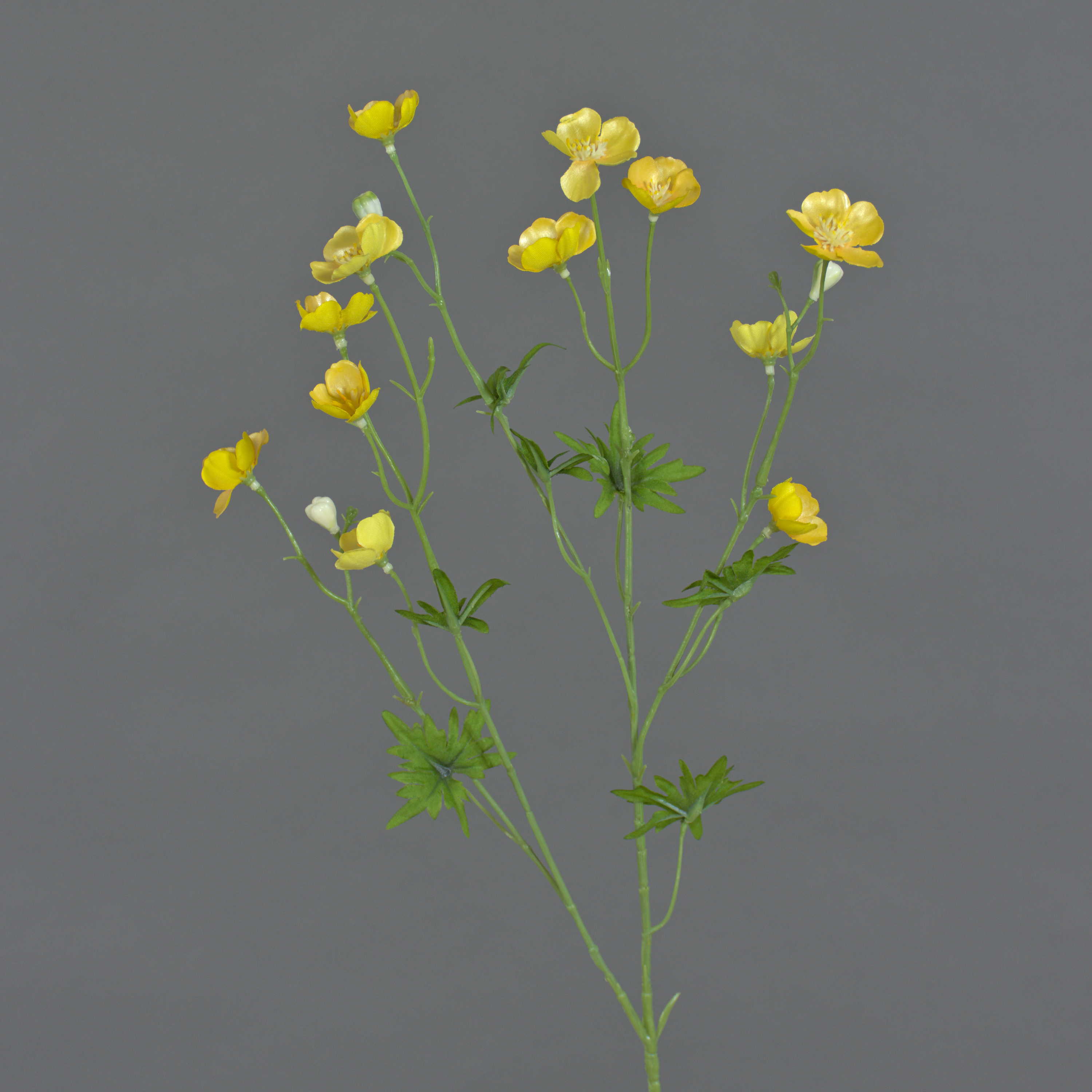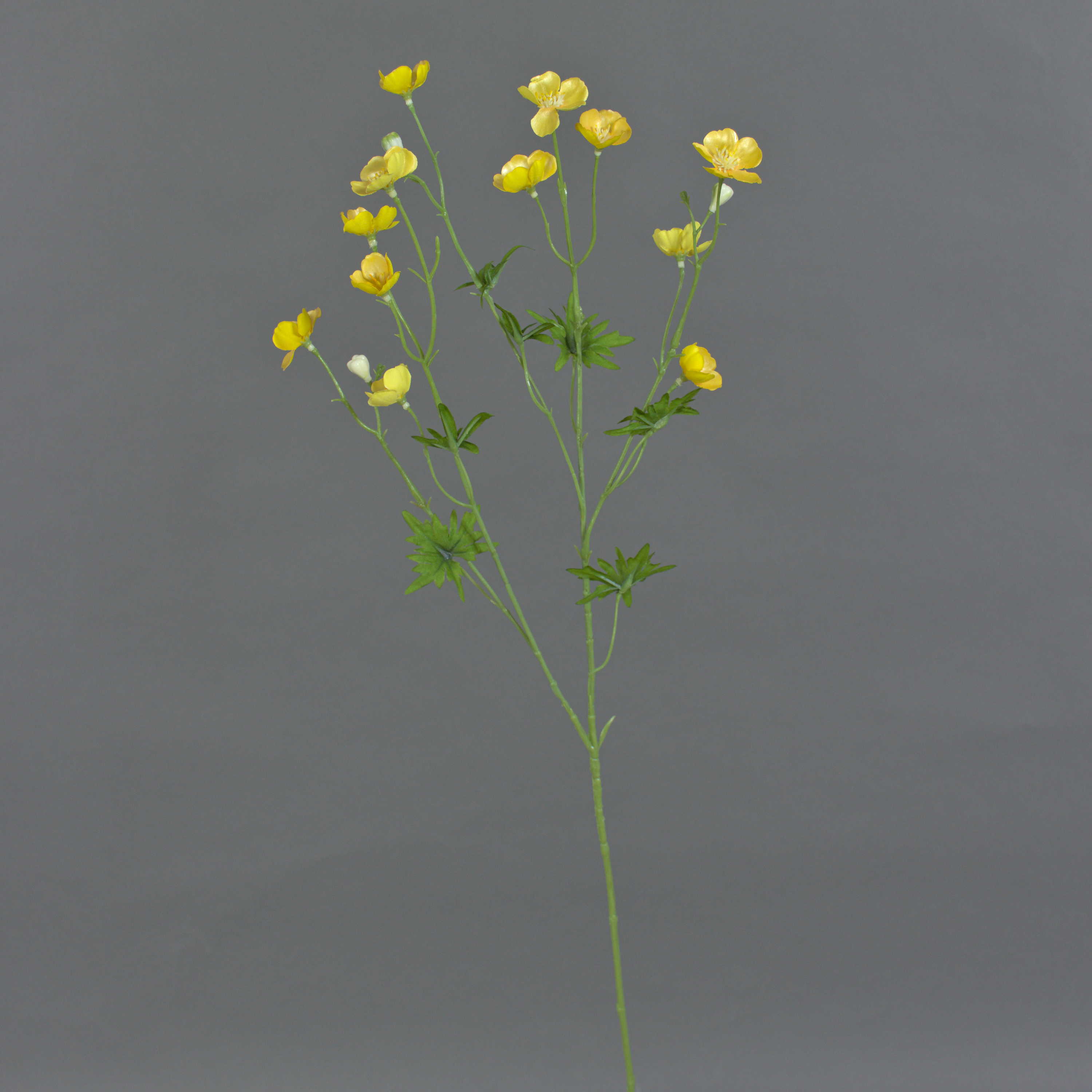 - Con 12 flores en color amarillo (Ø aprox. 2,5 - 3,5 cm) con pistilos amarillos y 3 capullos de plástico de alta calidad.