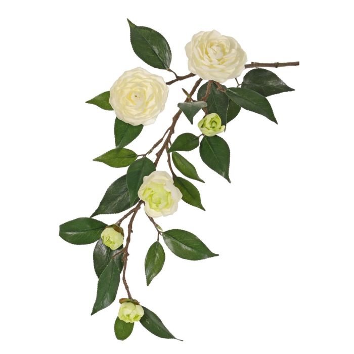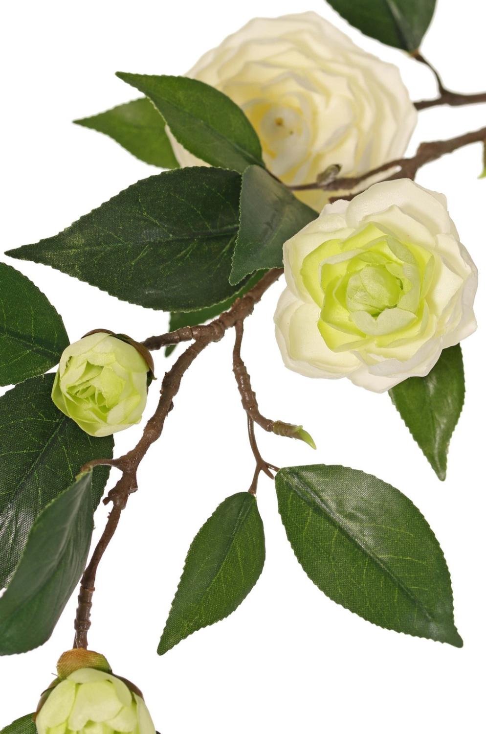 Rama de camelia artificial YARINA con flores, verde crema, 75 cm