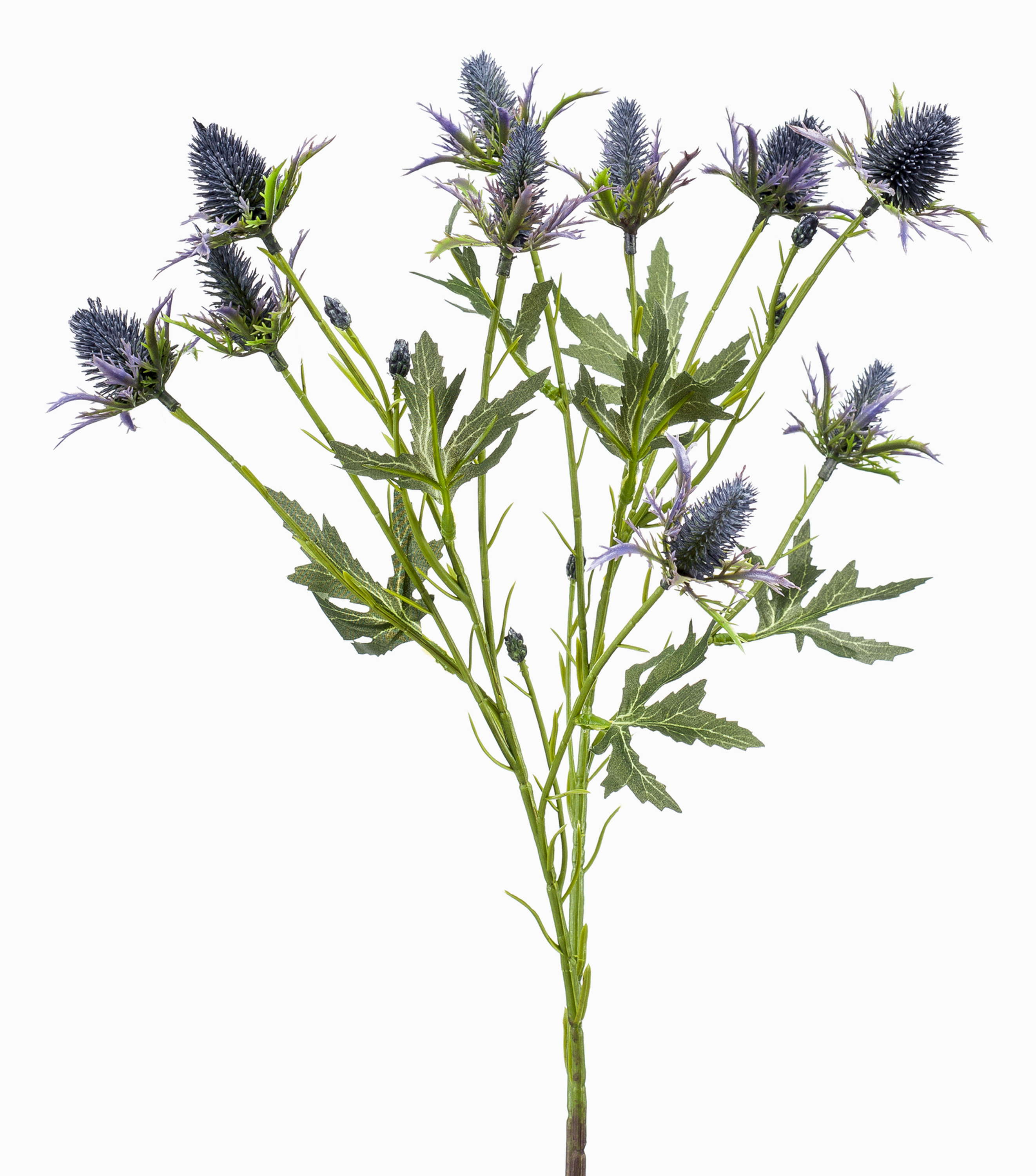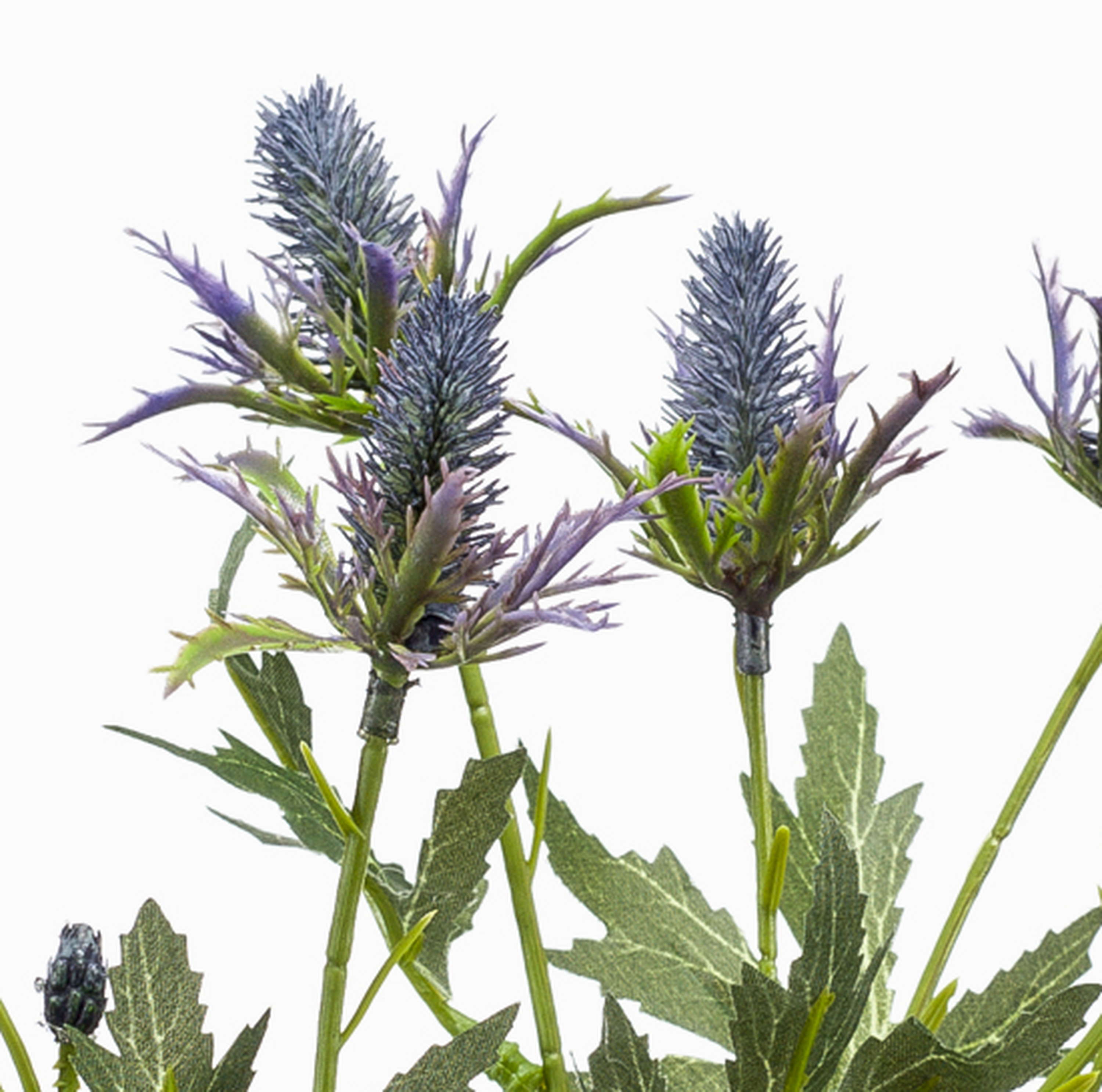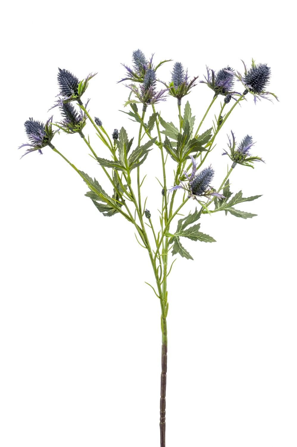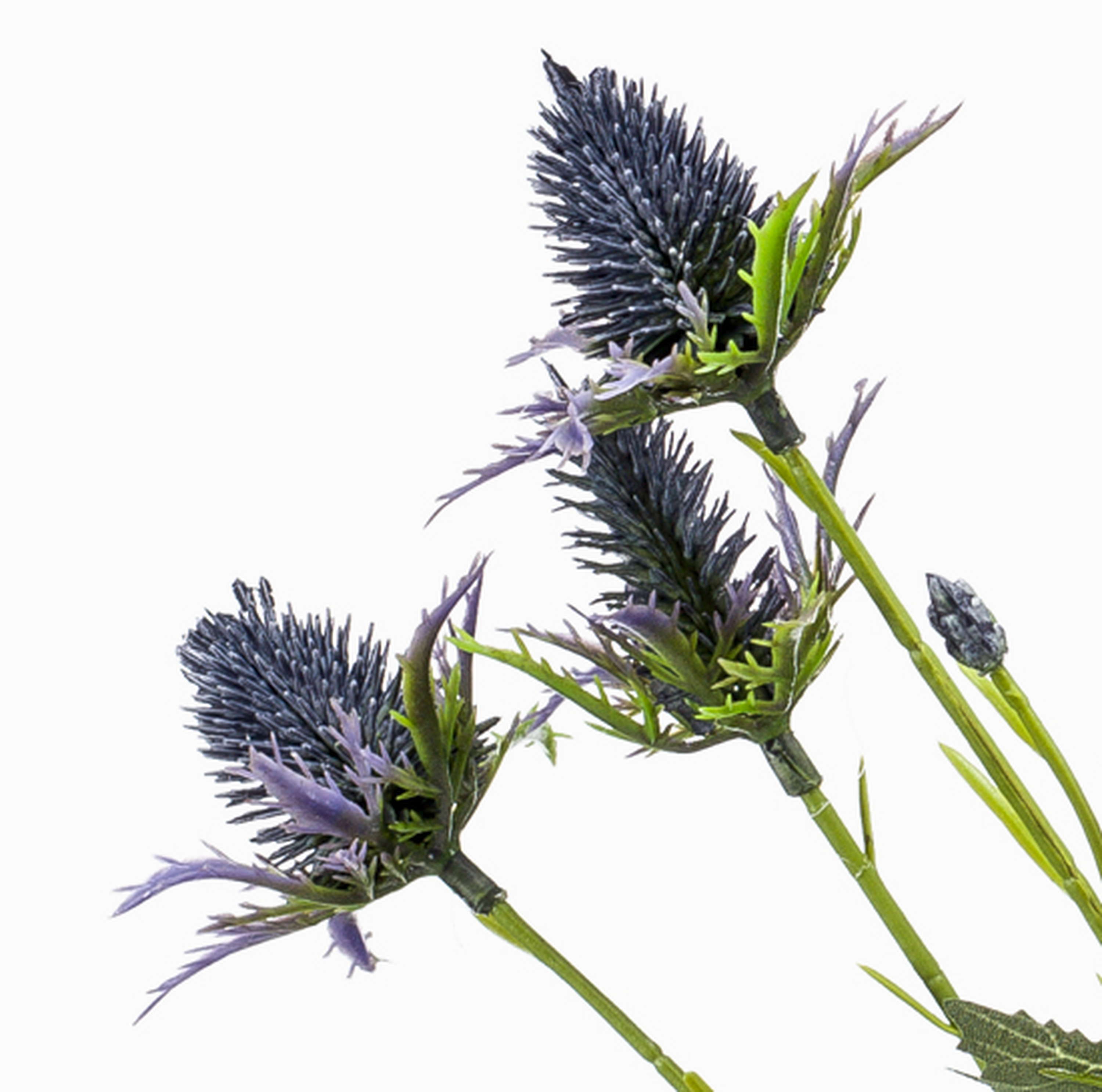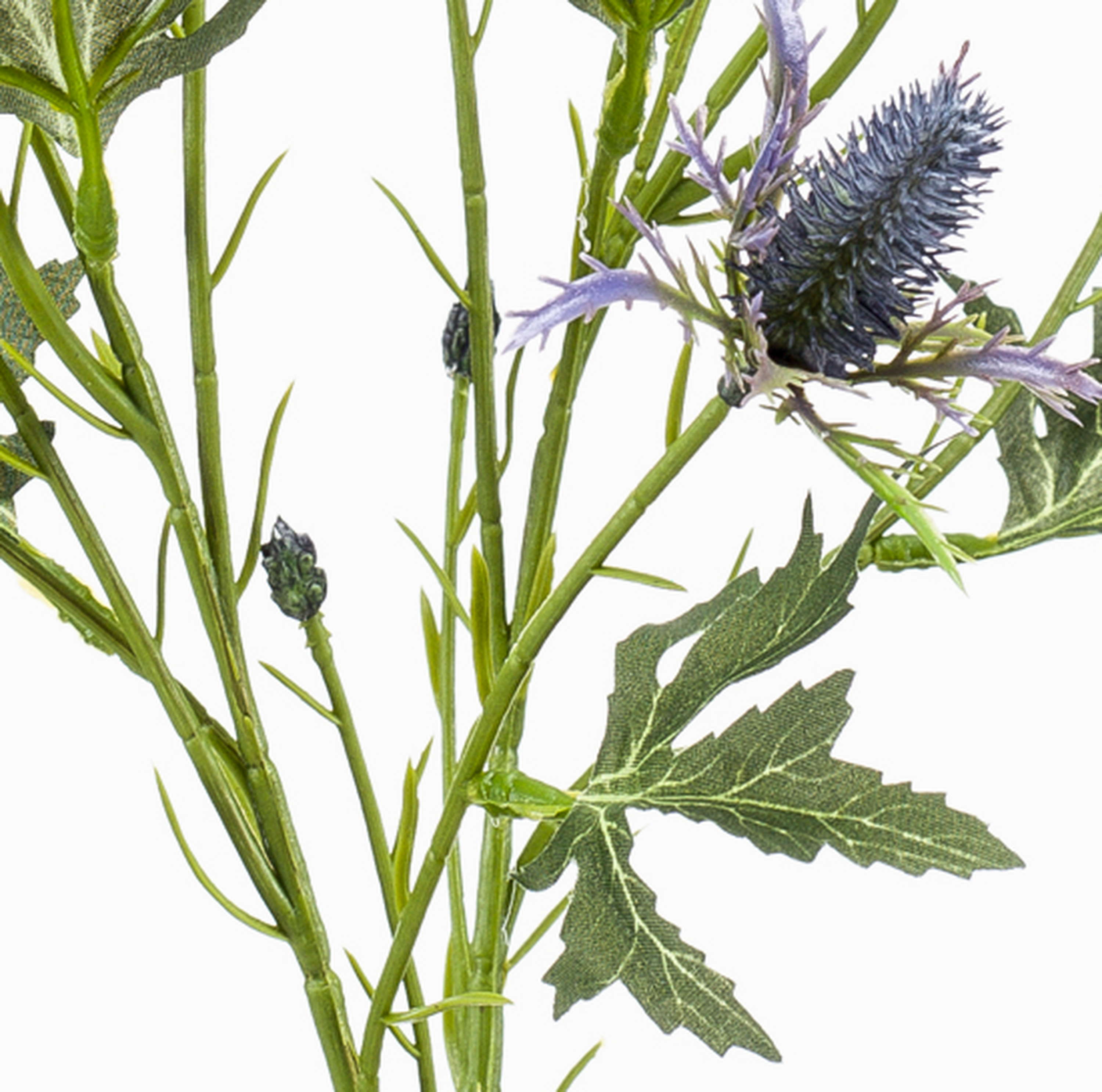 Cardo de plástico CUACOS de color azul con una dimensión total de aprox. 70 cm. Una decoración de aspecto natural para su hogar.