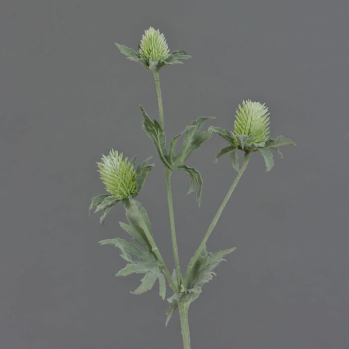 Rama artificial SVEA con 3 cardos en color verde. La flor artificial eryngium posee una longitud de aprox. 40 cm y hojas elaboradas detalladamente.