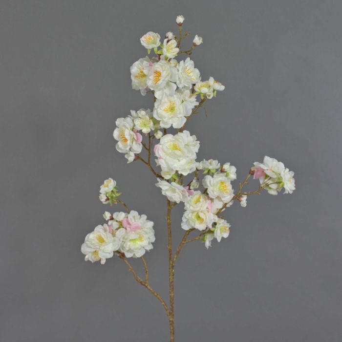 Rama de cerezo con flores sintéticas RUKIA con una longitud total de unos 90 cm en color blanco.