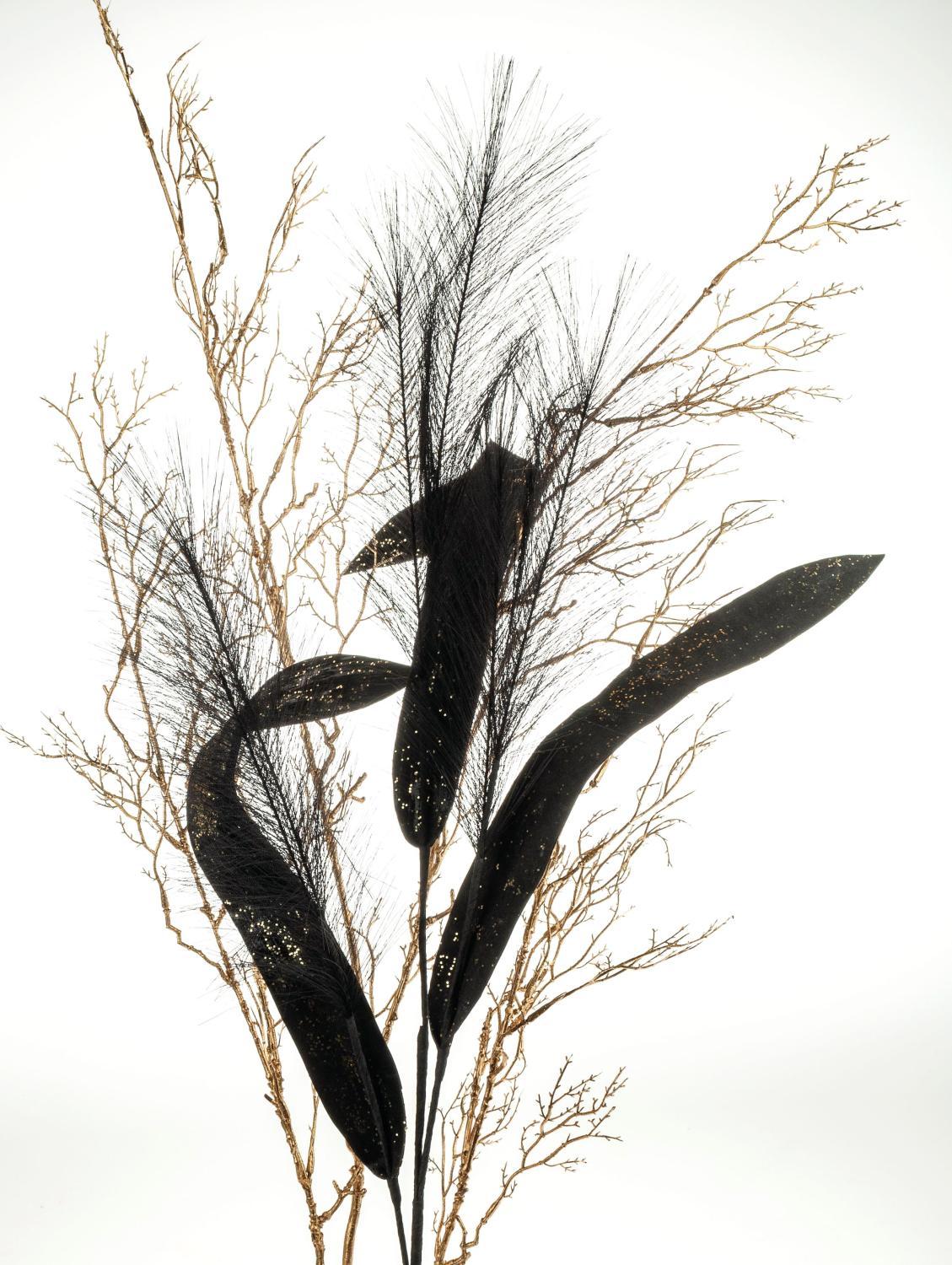 Rama de espuma plástica de junco ZIGOR con purpurina, negra, 110 cm