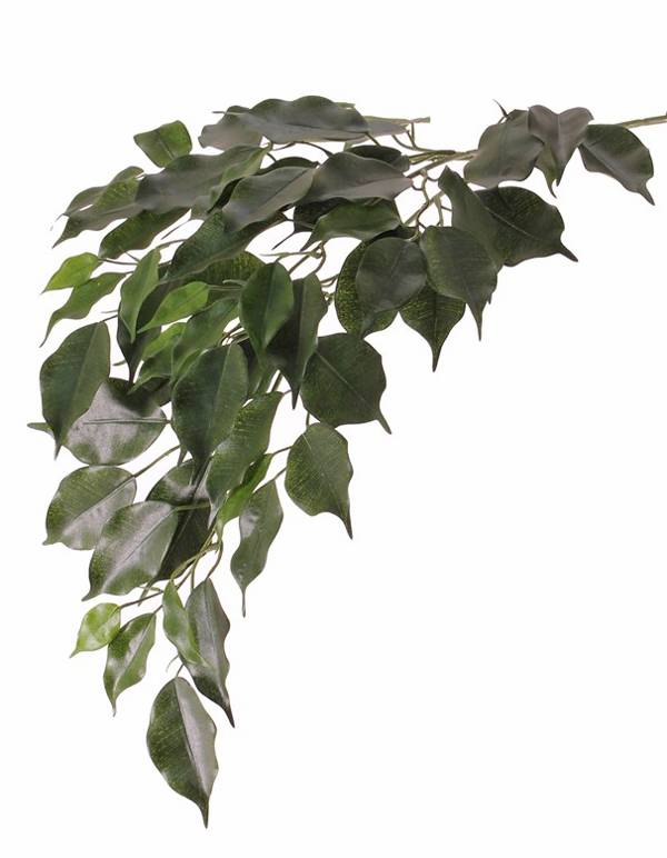 Rama artificial de Ficus benjamini YUGI con una longitud total de unos 75 cm en color verde.