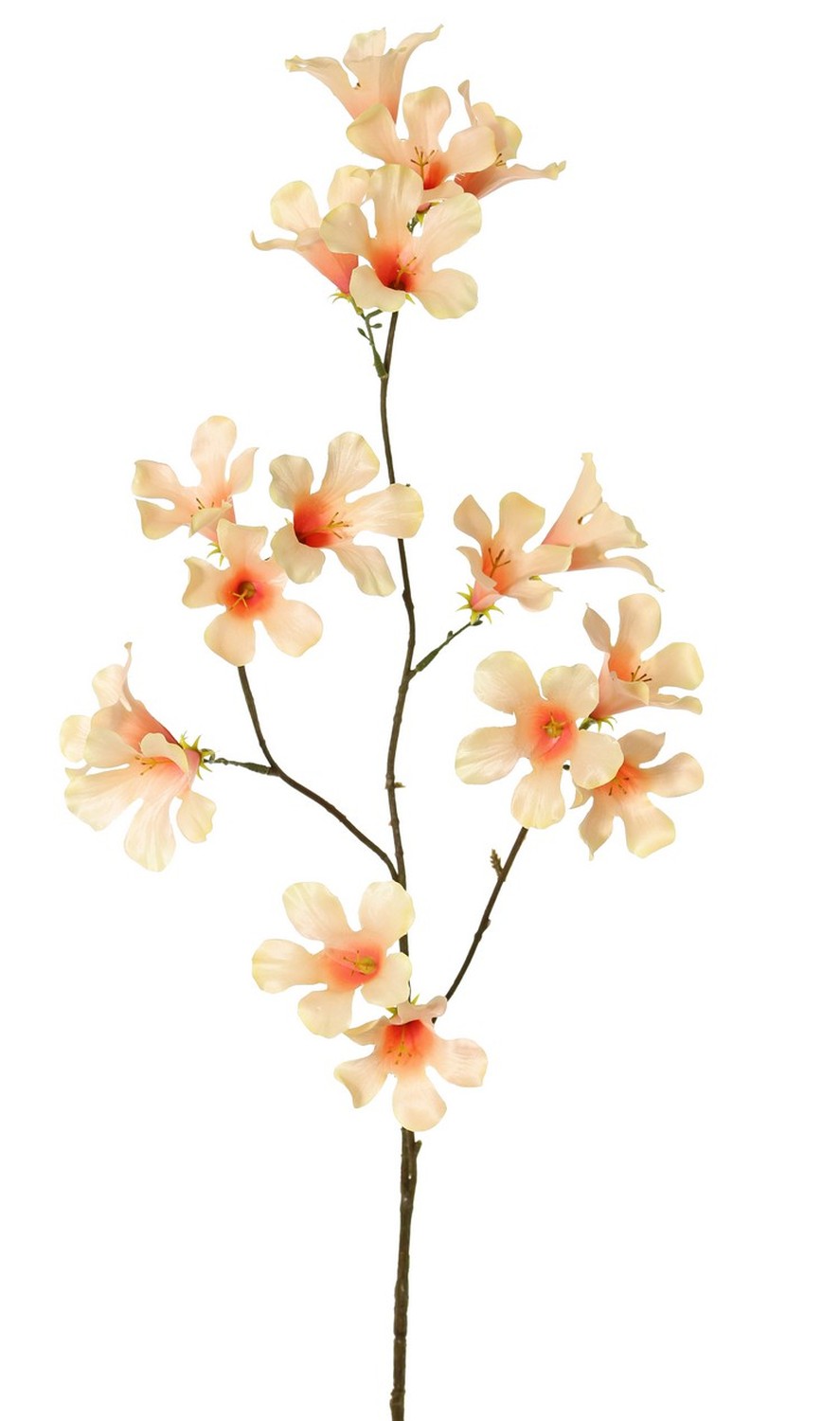 Rama de flor artificial trompeta de jazmín AURINA, melocotón, 90 cm