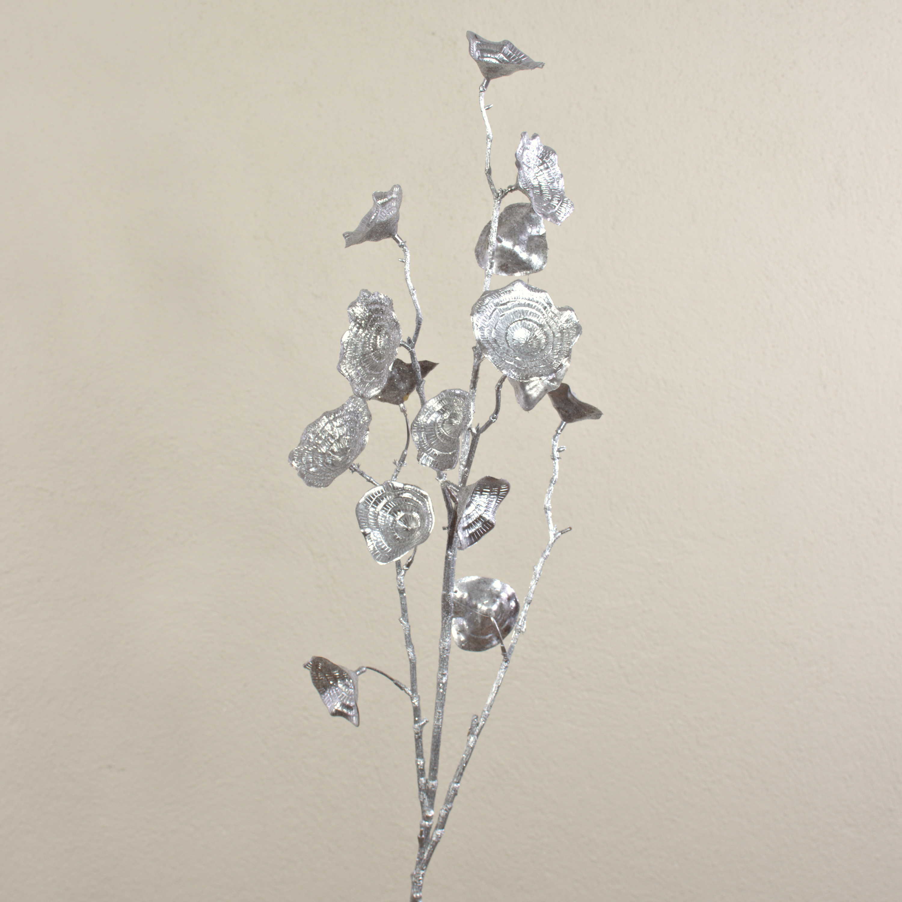 Rama de ginkgo artificial ARWID con brillo, plata, 105cm