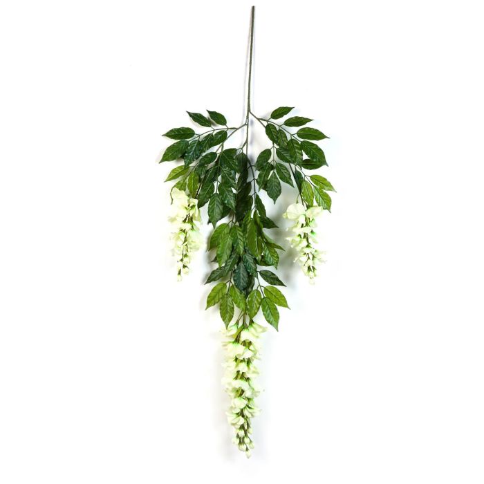 Rama de Wisteria artificial en color crema y verde con 80 hojas. La rama posee una longitud de 85 cm.