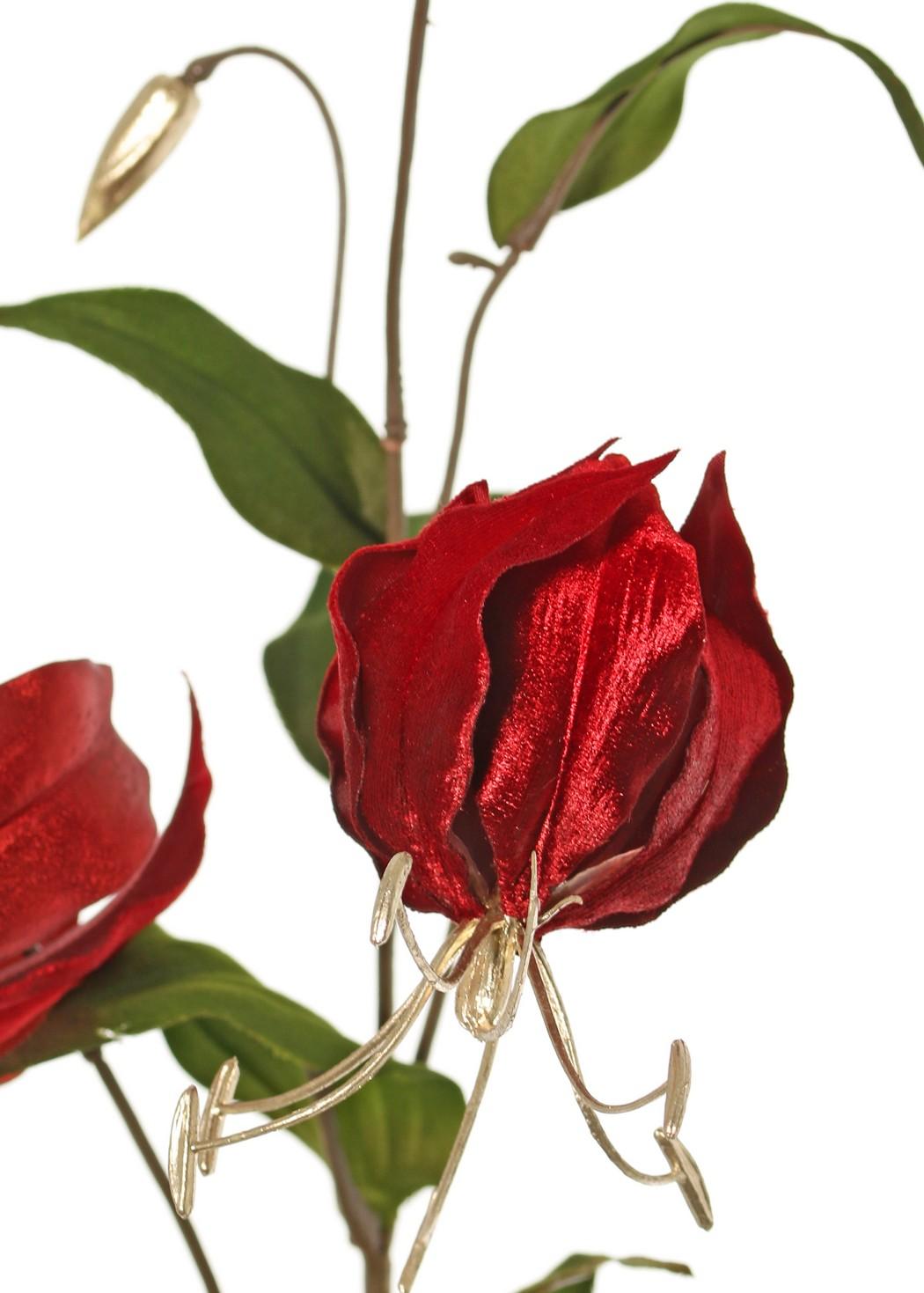 Rama de gloriosa de terciopelo DINFAS, rojo oscuro-dorado, 80 cm