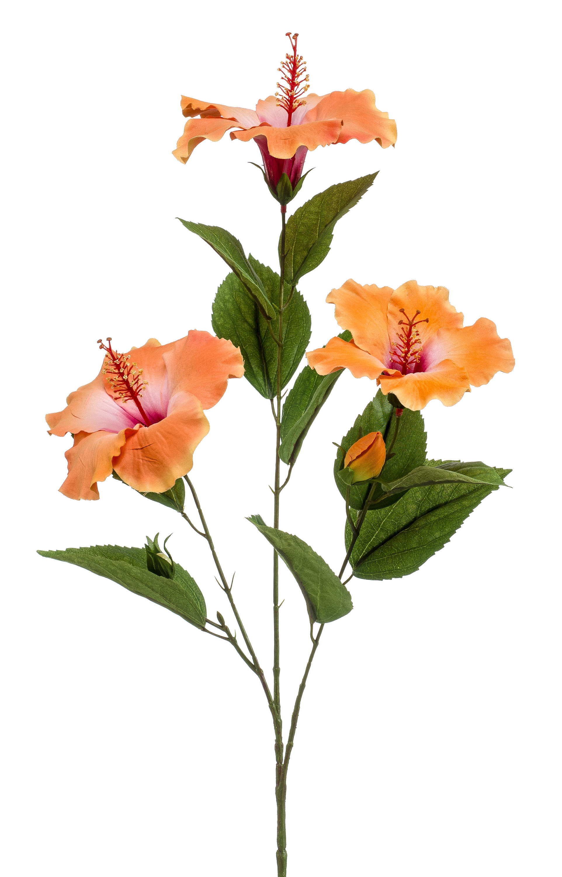 Rama de hibisco falso AMADOU con flores, naranja, 80cm