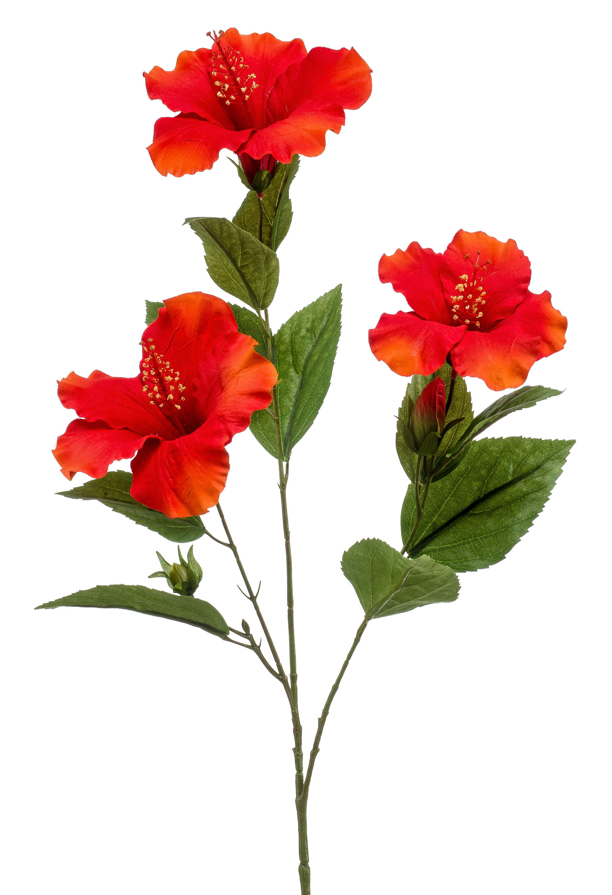 Rama de hibisco falso AMADOU con flores, rojo, 80cm