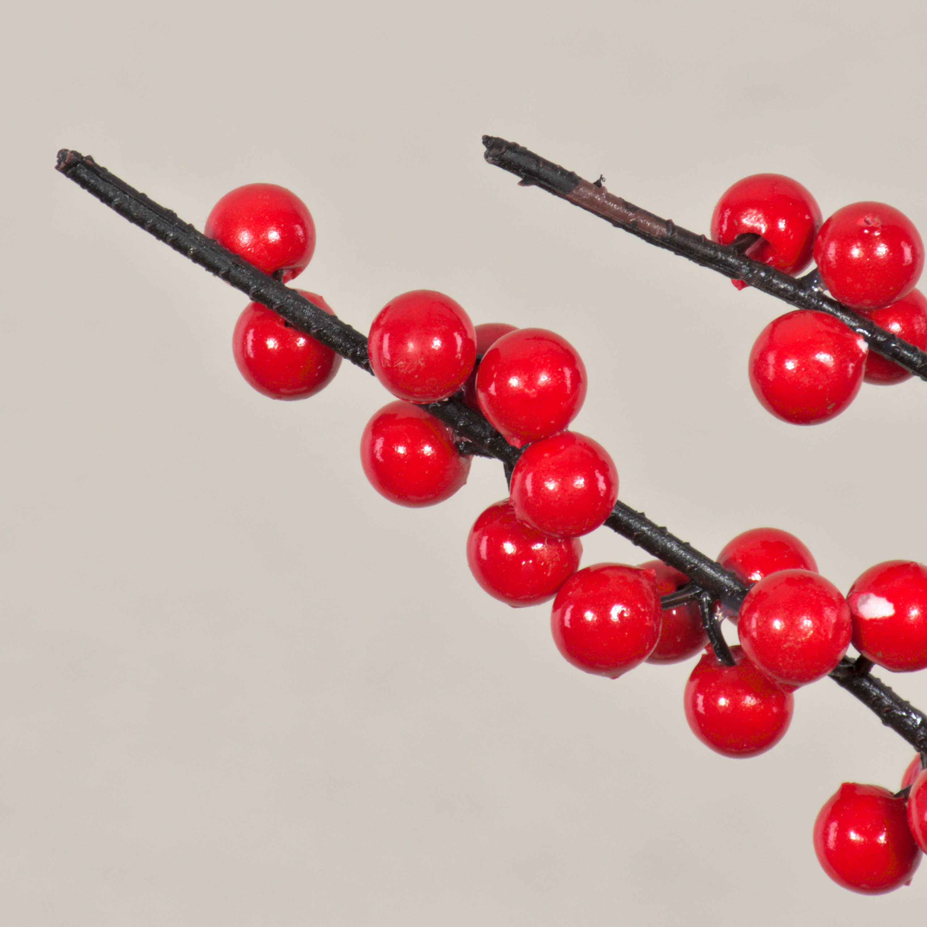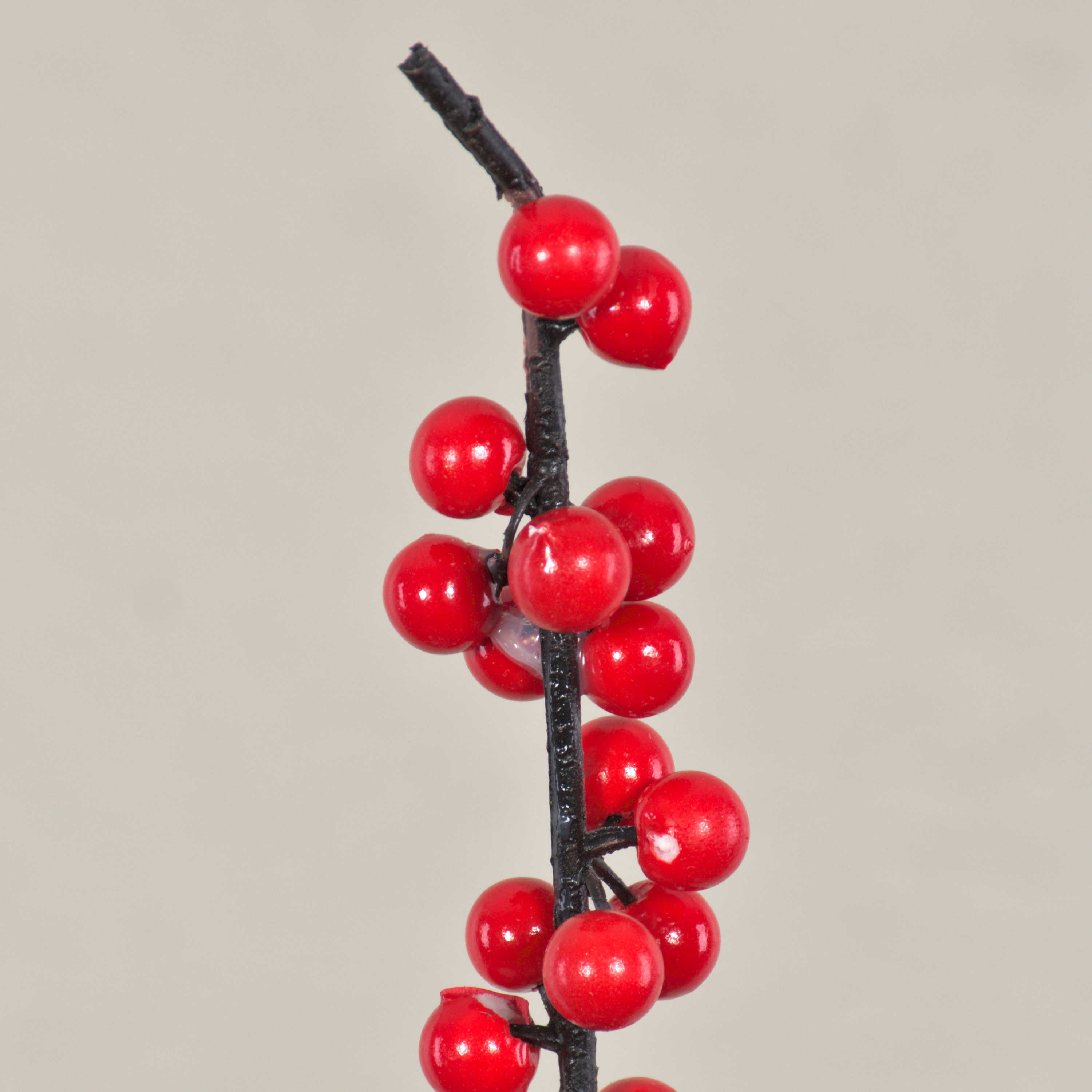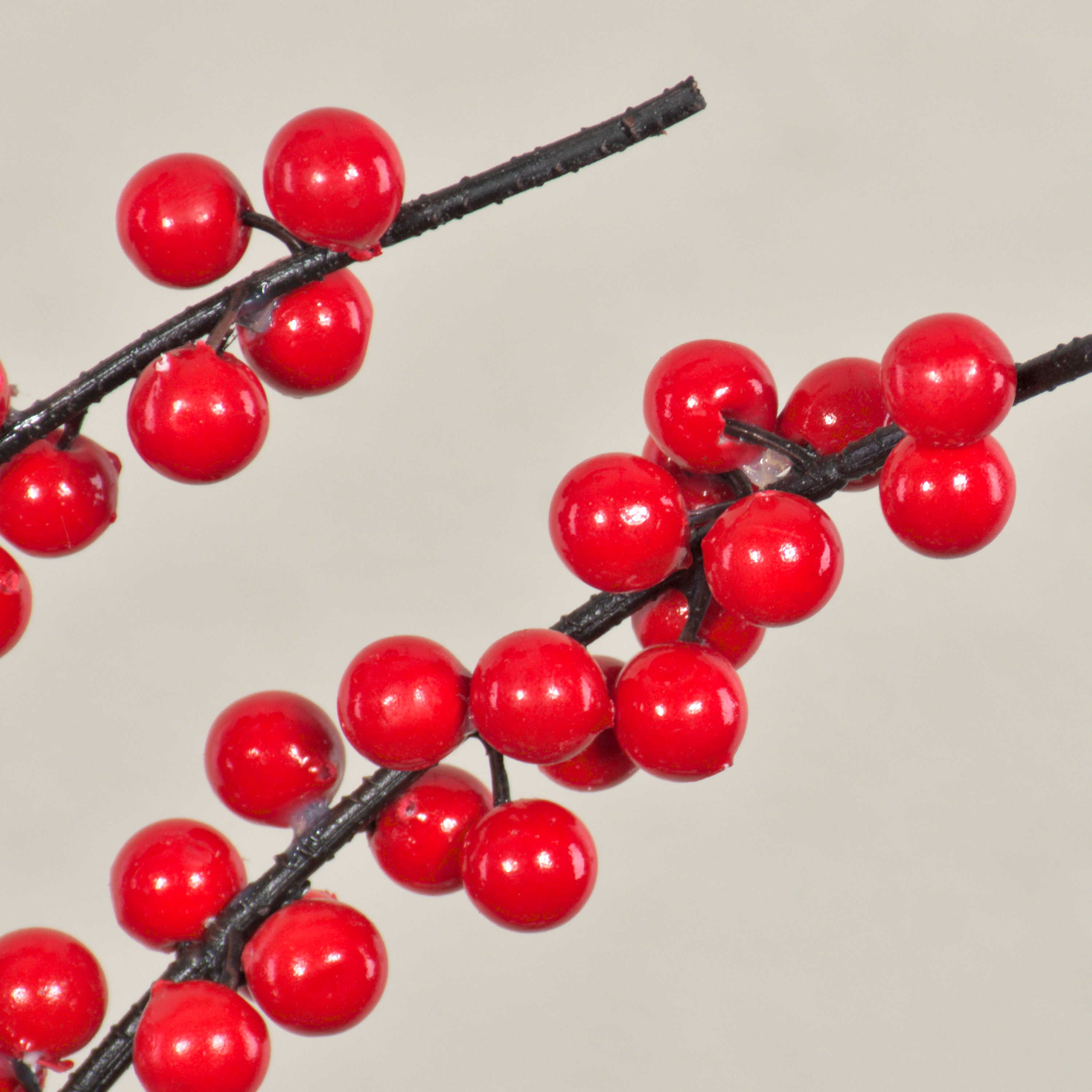 La rama de bayas falsas KUNJUAM de color rojo posee una altura de aprox. 80 cm. La elaboración de alta calidad crea un aspecto natural.