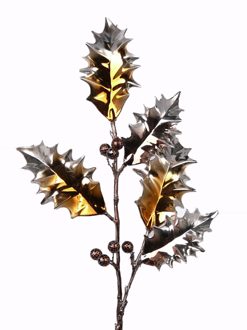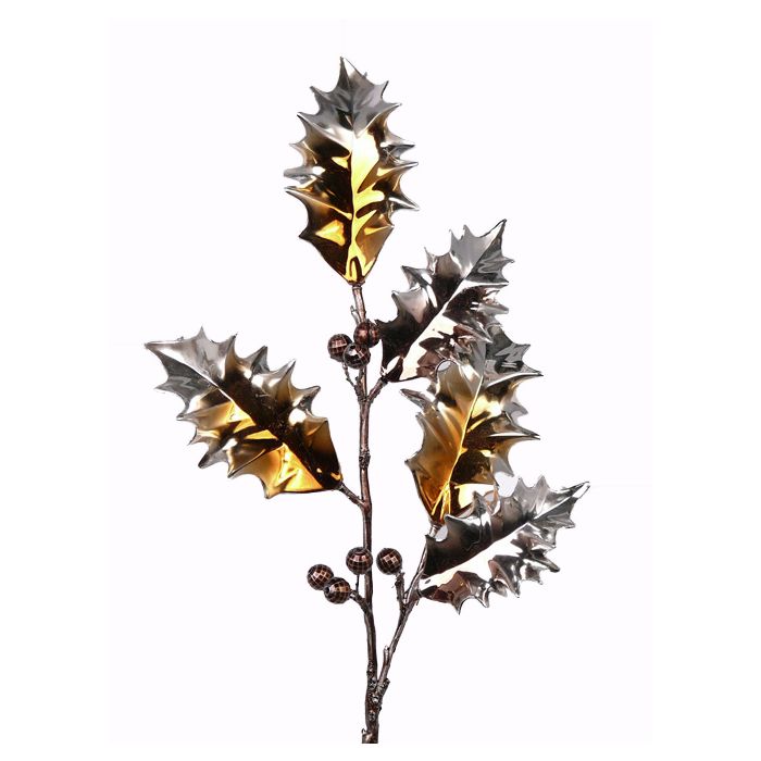 Rama de ilex artificial PASCHA con frutos, plateada-dorada, 50cm