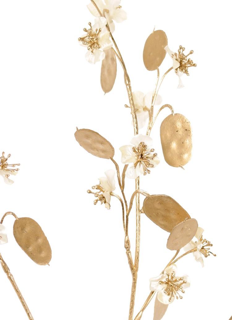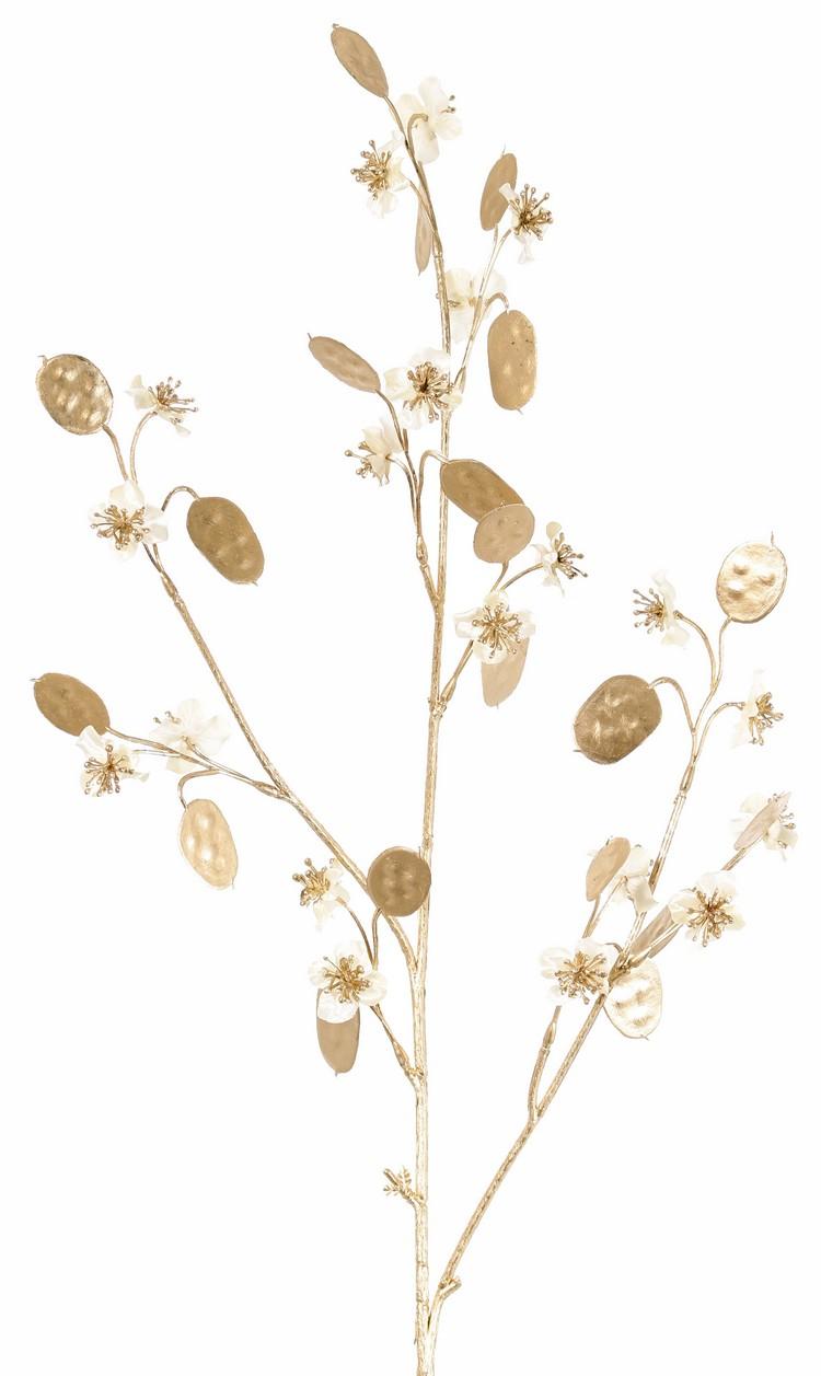 Rama de Lunaria artificial de satén PINDUS con flores, blanco-dorado, 85 cm