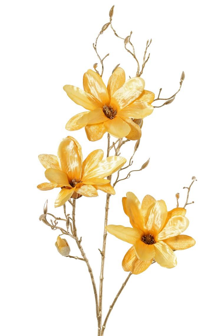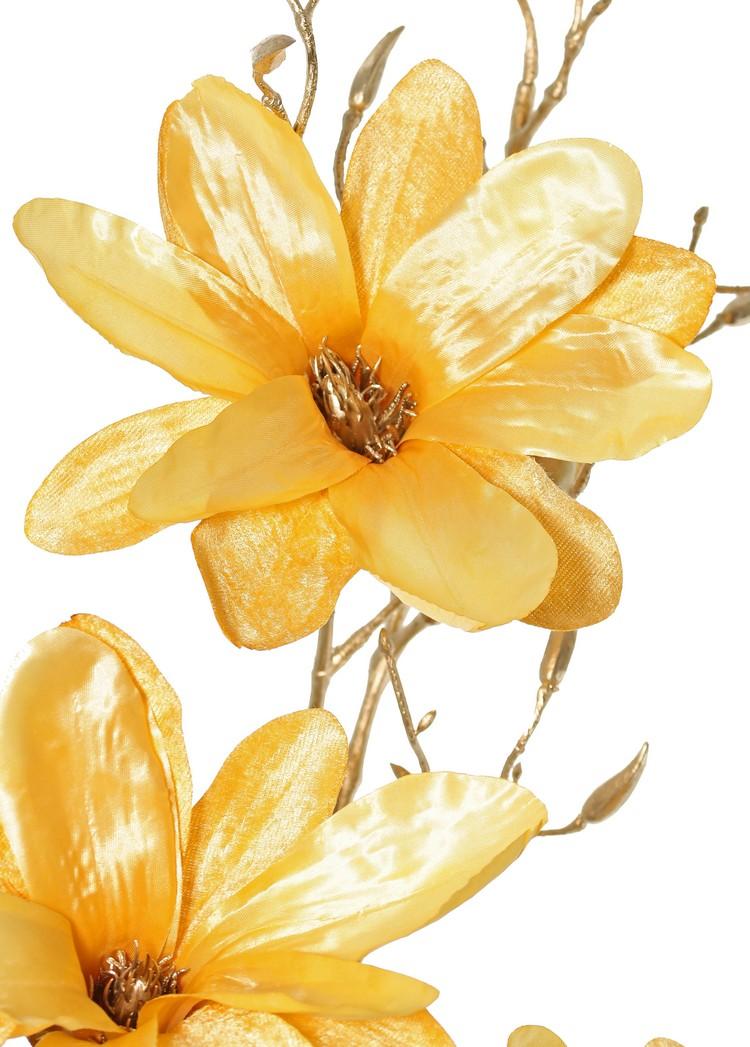 Rama de magnolia artificial de terciopelo LEAFY, amarillo-dorado, 115 cm