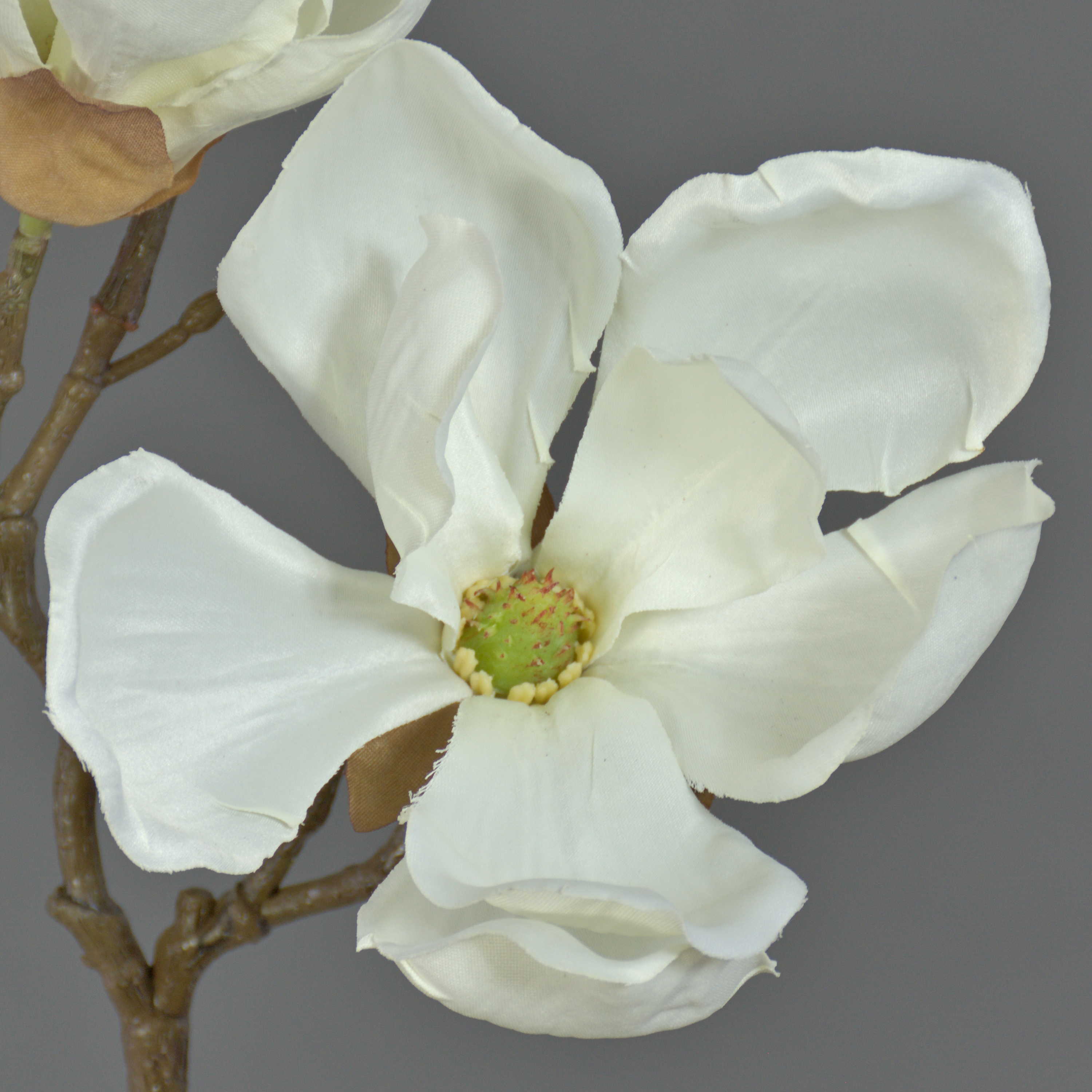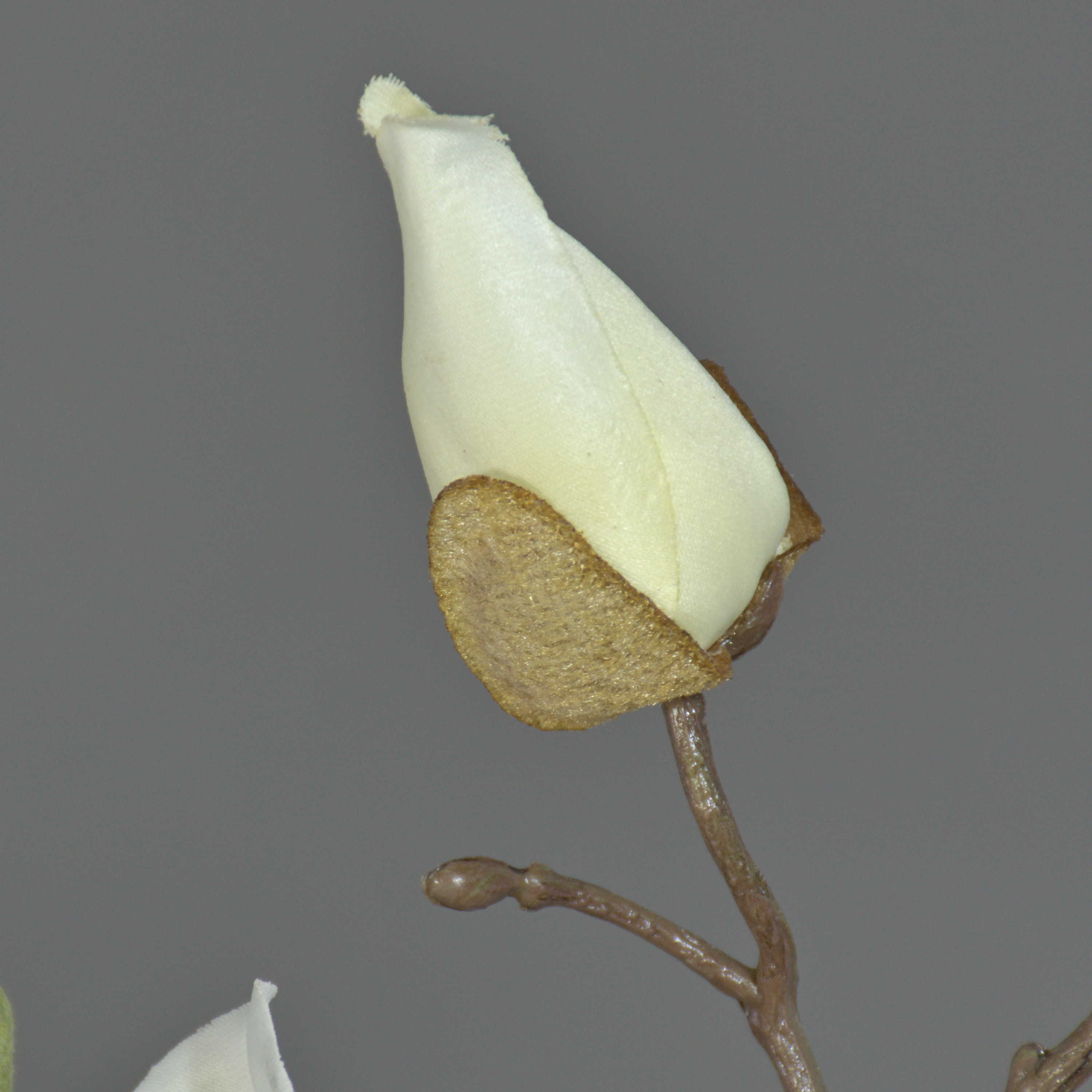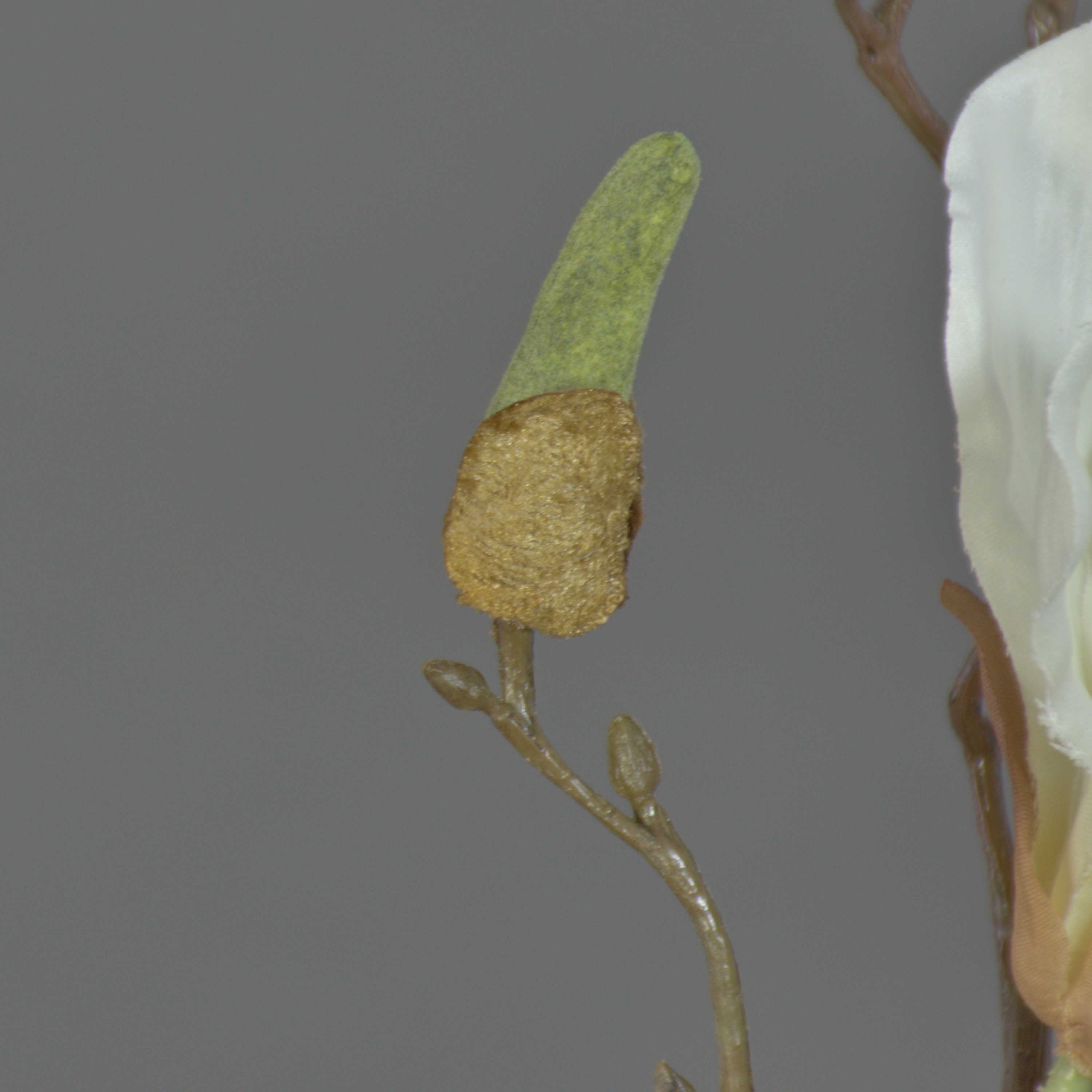 La rama sintética de magnolia MALBINE tiene una longitud total de unos 50 cm. La rama decorativa tiene 2 flores en crema y 1 capullo en crema.