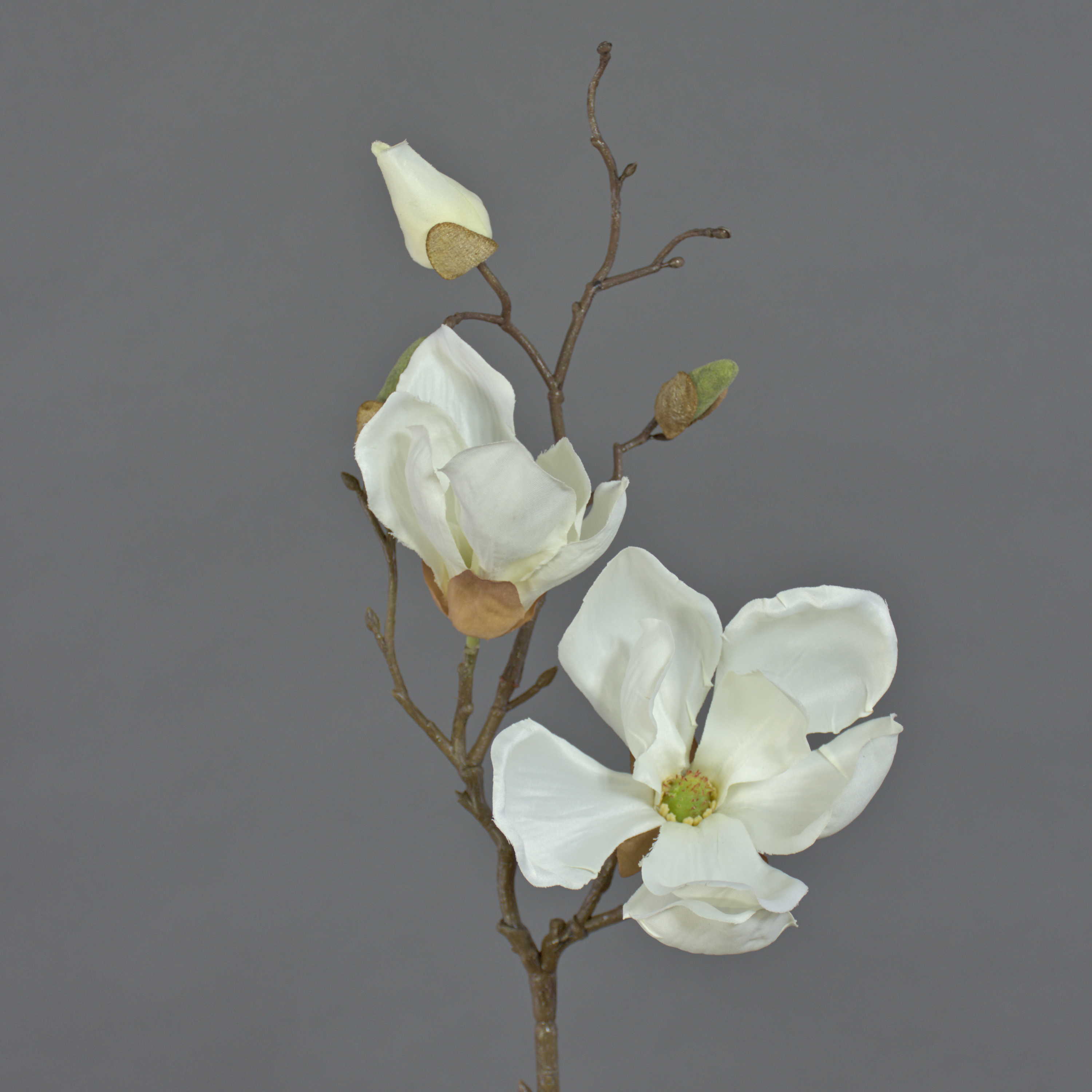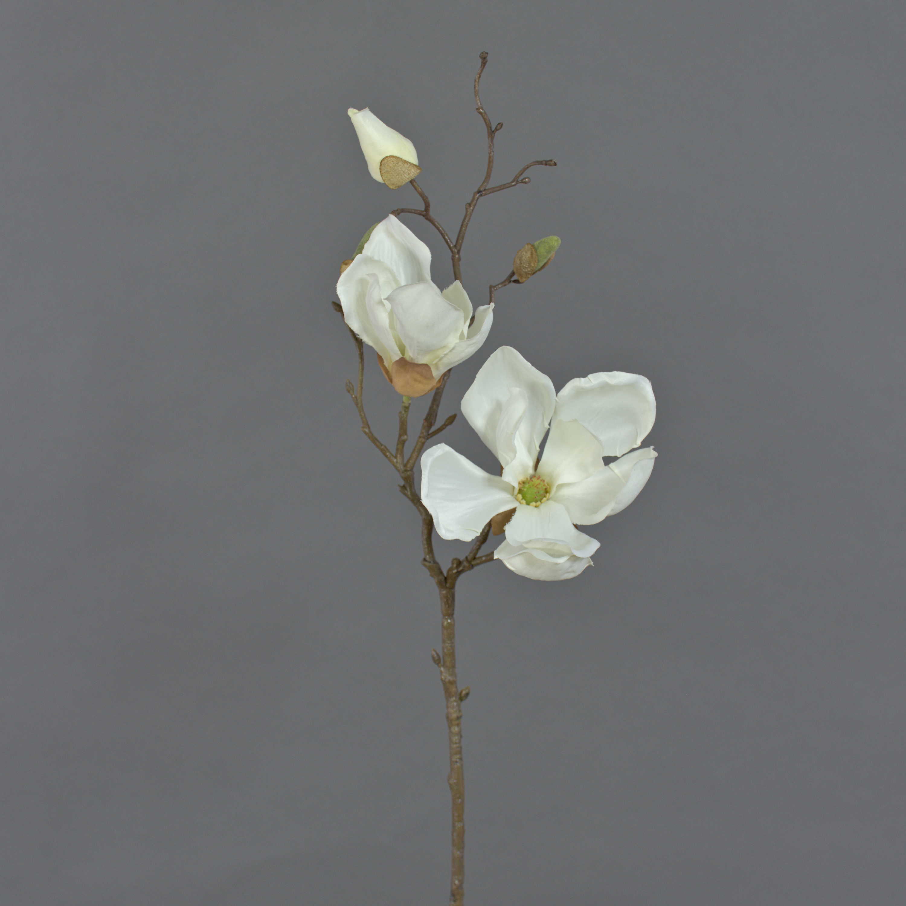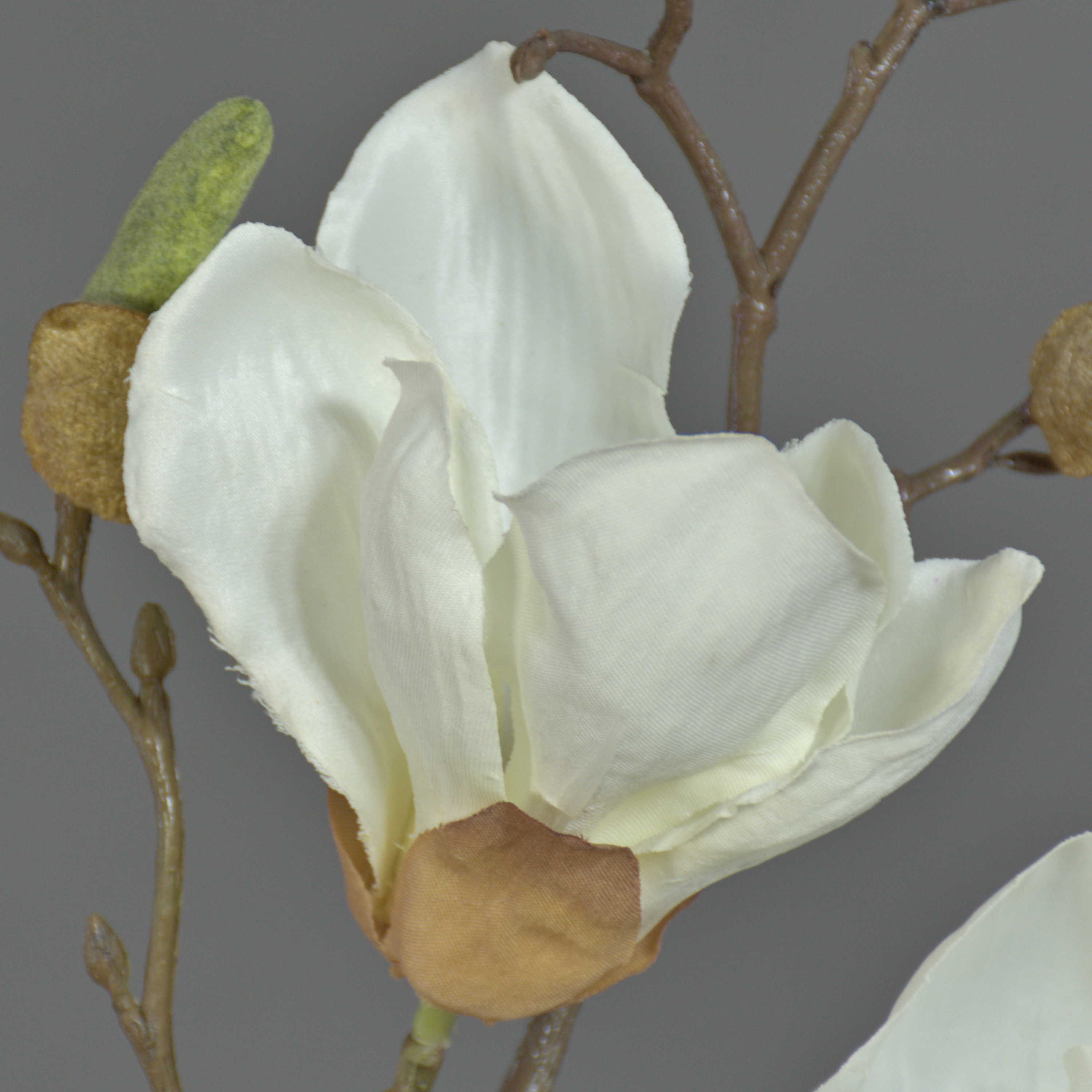 La rama sintética de magnolia MALBINE tiene una longitud total de unos 50 cm. La rama decorativa tiene 2 flores en crema y 1 capullo en crema.
