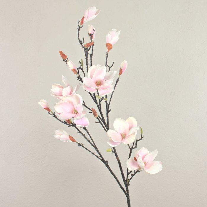 Las flores de magnolia artificial YONA de color blanco-rosa y con una altura de 130 cm decoran su espacio personal con estilo.