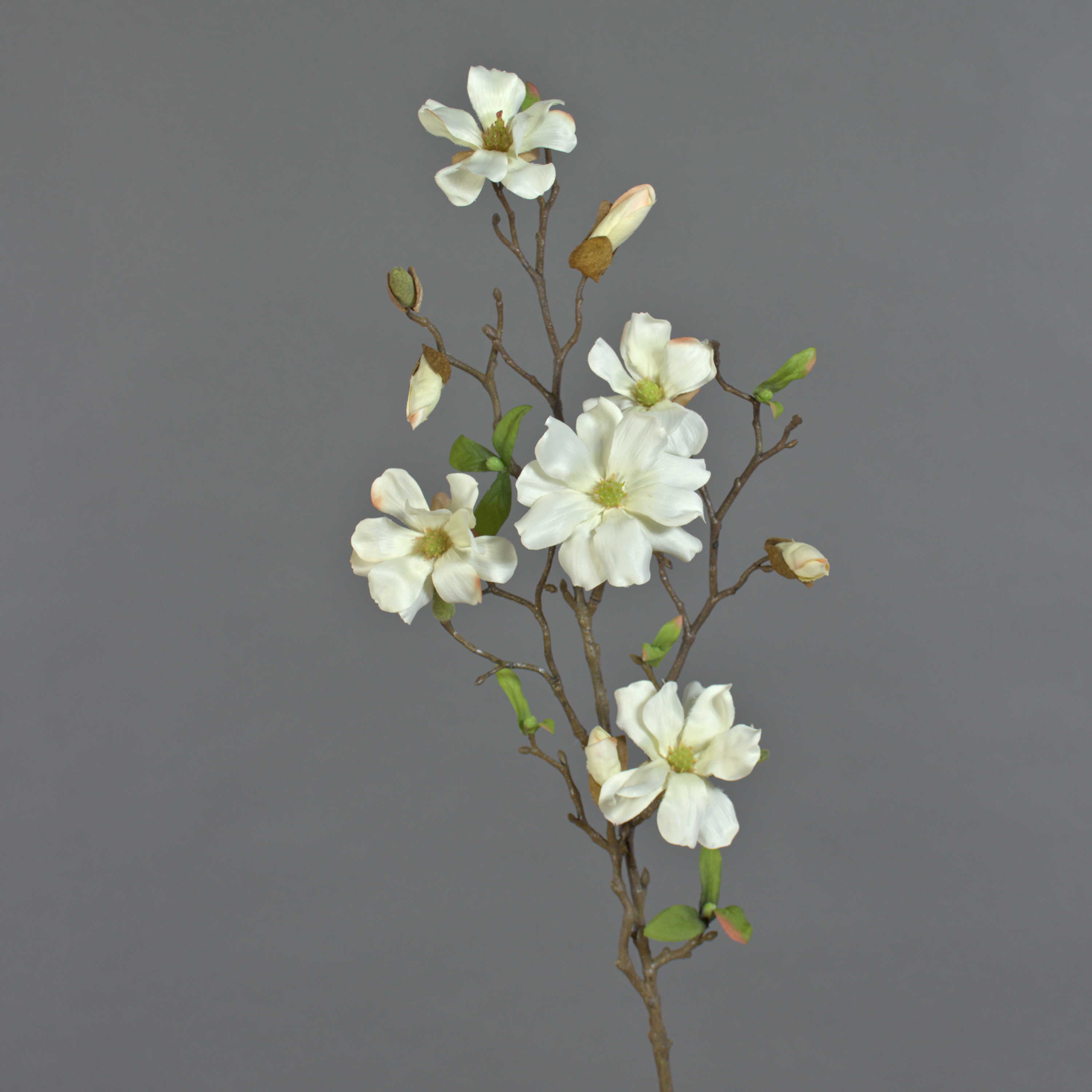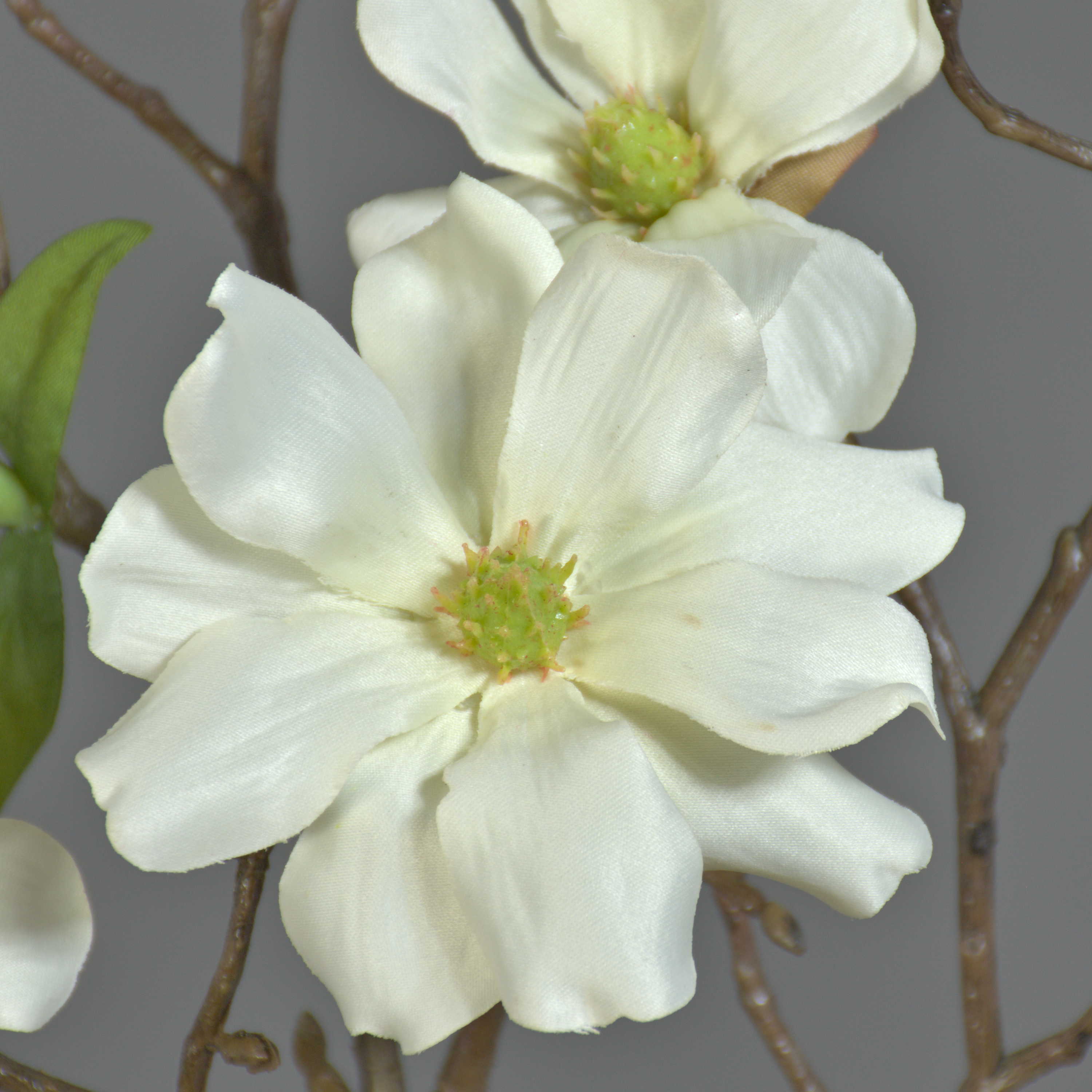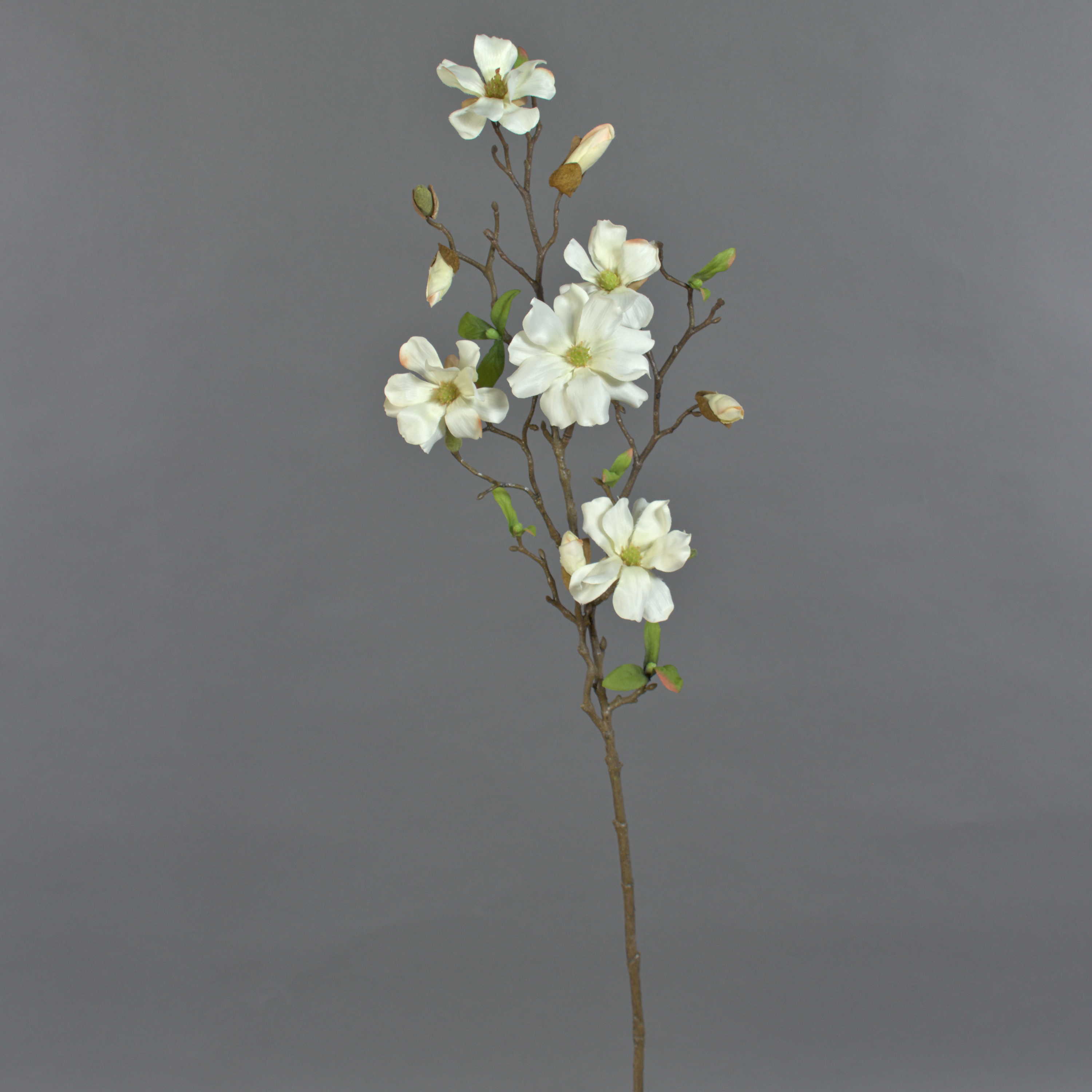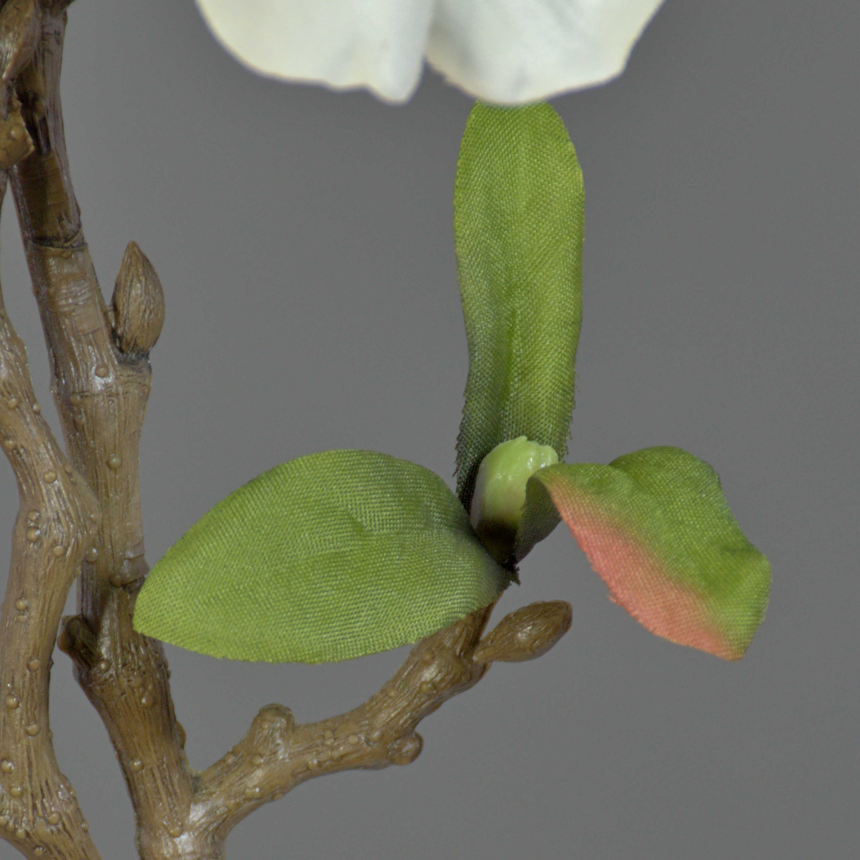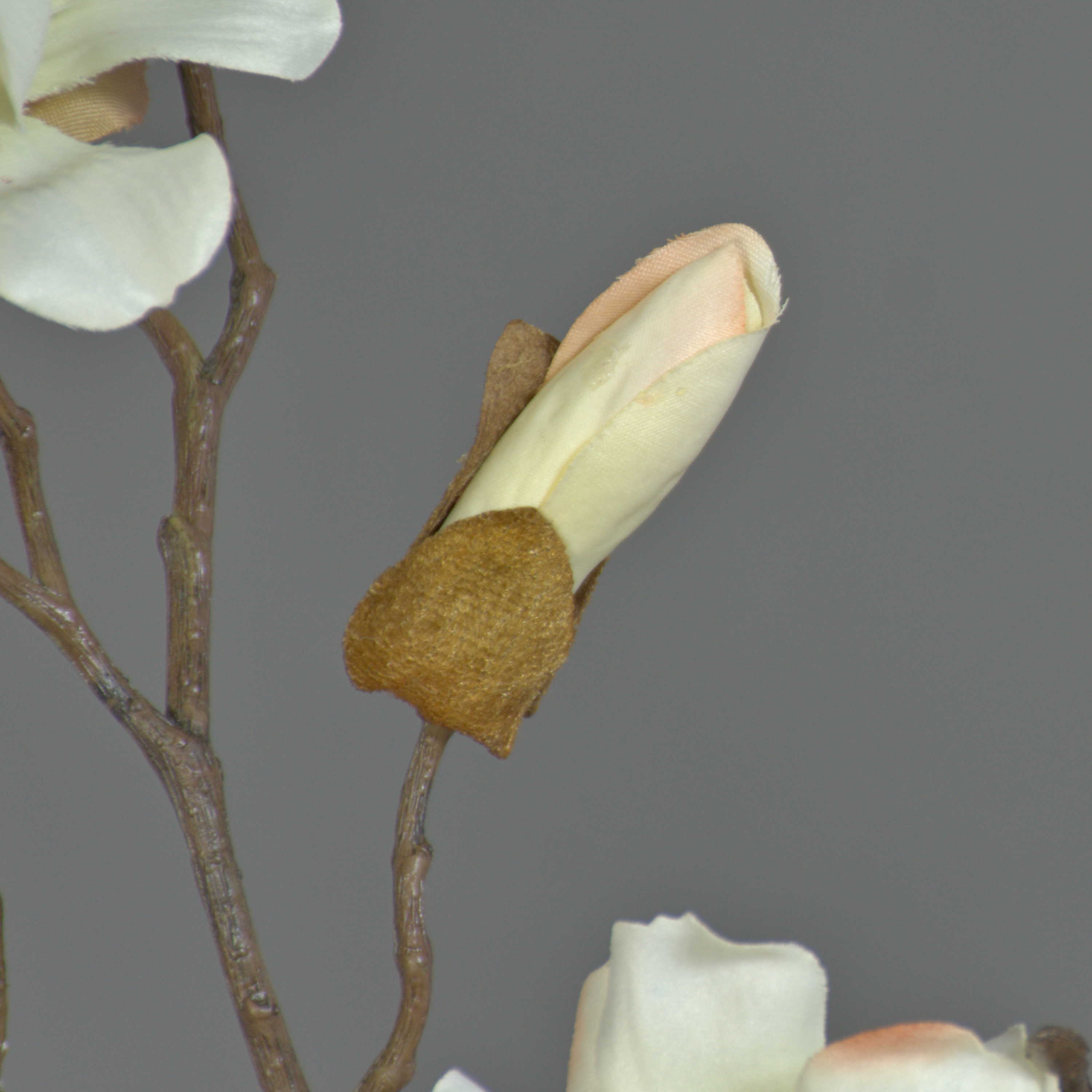 Rama de magnolio MARGA, con 4 flores de color blanco y varios capullos, finamente elaborada. La rama artificial mide unos 80 cm de largo en total