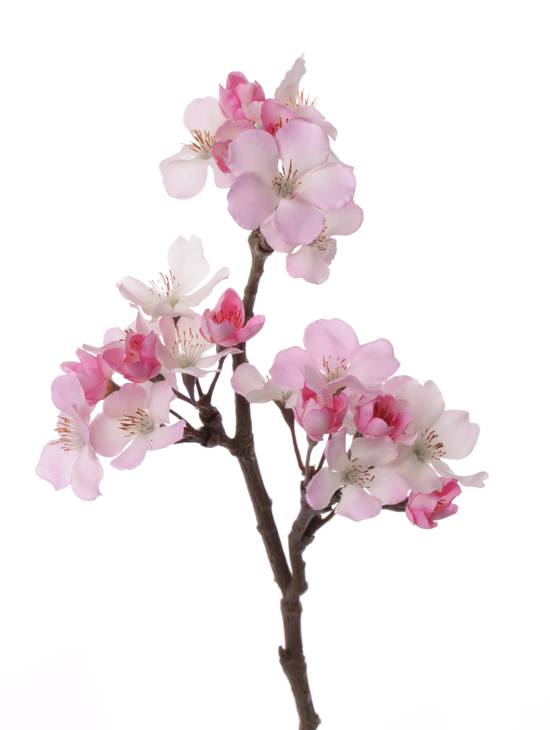 La rama decorativa de manzano OCHUKO en color rosa-blanco tiene un diámetro de flor de aproximadamente 1,5-4 cm. Debido a su ramificación y a sus flores abiertas y semi abiertas, la planta artificial es perfecta para jarrones de cuello alto.