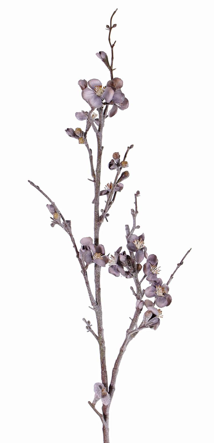 Rama de manzano artificial YUKI, flores, helado, gris-violeta, 90cm