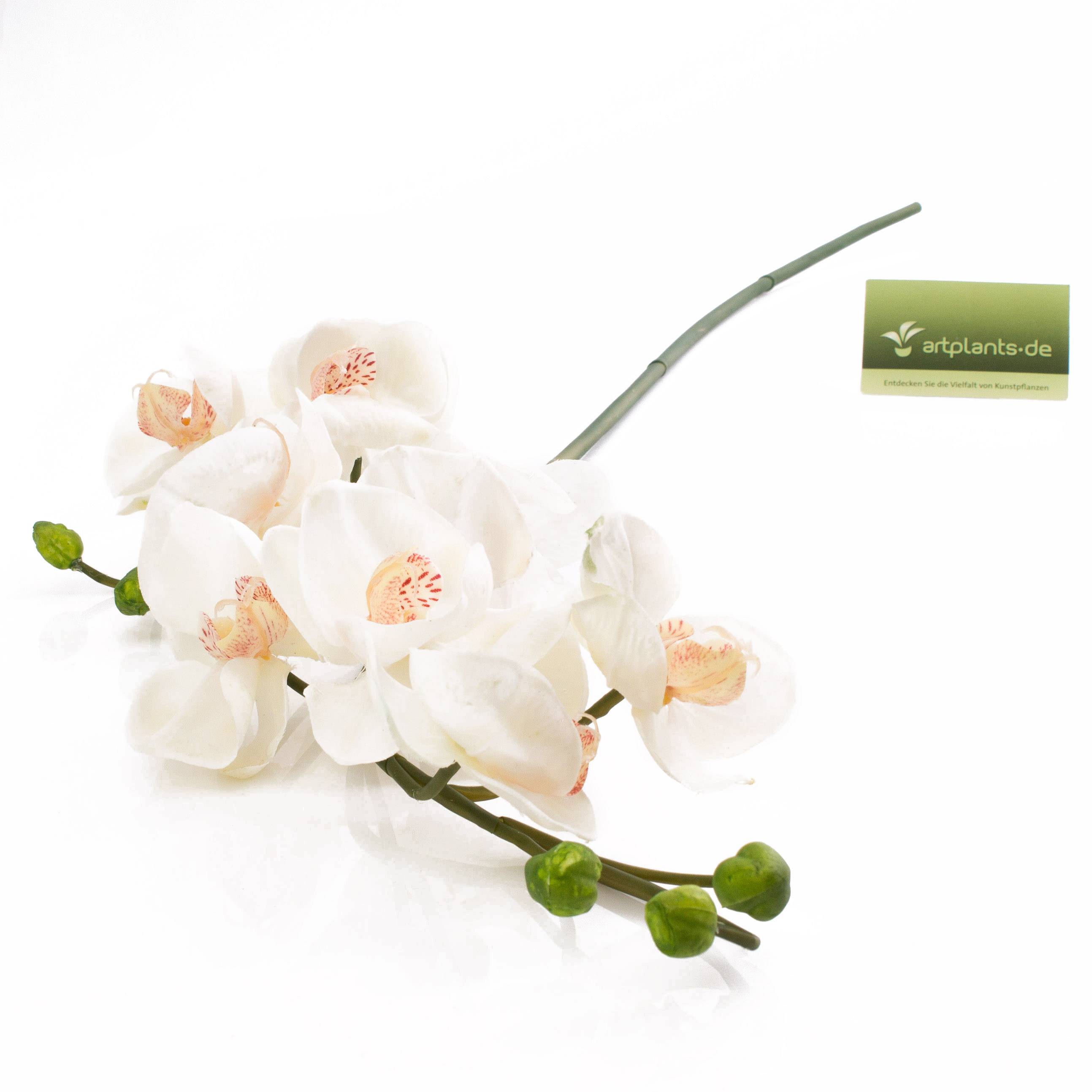 Rama de orquídea Phalaenopsis con 10 flores en crema y blanco y 5 capullos. La rama artificial mide una longitud alrededor de 85 cm.